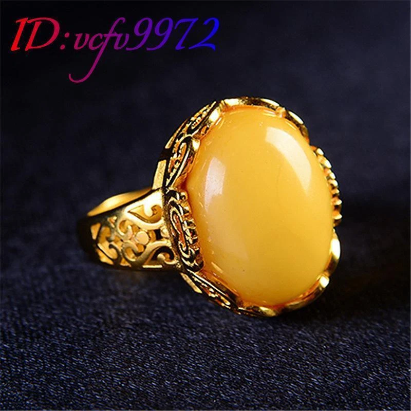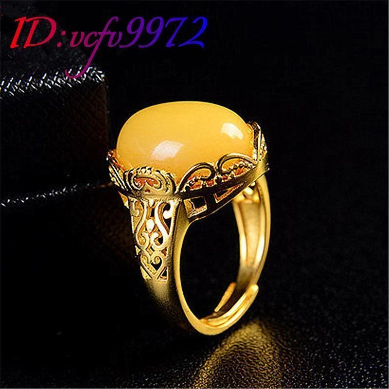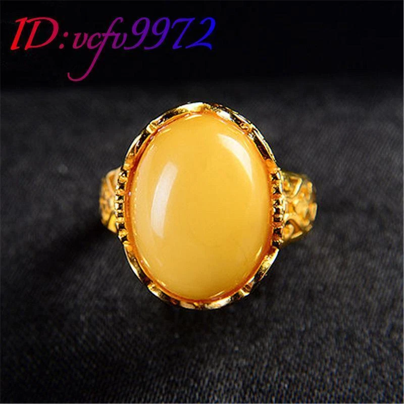 Yellow Amber Rings Amulet Natural Jewelry Charm Designer 18K Gold Plated