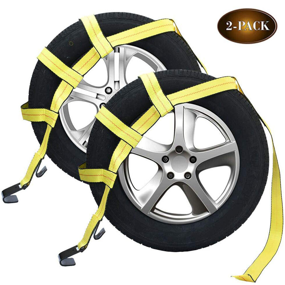 Robbor Tow Dolly Basket Straps with Flat Hook for Small to Medium Size Tires Over-The-Wheel Tie Down Bonnet Wheel Net 1. The Robbor Tow Dolly Straps(2 Pack) with Flat Hook ,Brightly Yellow Color Ideal for car restoration and hauling jobs.1. The Robbor Tow Dolly Straps(2 Pack) with Flat Hook ,Brightly Yellow Color Ideal for car restoration and hauling jobs. 2. The Robbor Tow Dolly Basket Straps with Flat Hook for Small to Medium Size 14"-17"tires. 3. Tow Dolly Basket Straps Straps-Made with 2 inch, 12,000 lb Polyester Industrial Grade Webbing, Made for maximum hauling strength with industrial-grade polyester webbing keep your cargo firmly in place during transportation. 4. The Robbor Tow Dolly Straps-Loose End of the Wheel Bonnet Can be Tied Down with a 2" Ratchet or Lashing Hook. Ideal for car restoration and hauling jobs. Please to Pay More Attention It is recommended to use two straps - one for each front tire - when securing a vehicle to a tow dolly. Available in single quantities, too. Fitment : Tow Dolly Basket Straps with Flat Hook for Small to Medium Size 14"-17"tires. Specification Working Load Limit: 3,333 lbs. Assembly Break Strength: 10,000 lbs. Webbing Width: 2" Webbing Break Strength: 12,000 lbs. Quantity: 2 Robbor Tow Dolly Straps (2 Pack) with Flat Hook ,Brightly Yellow