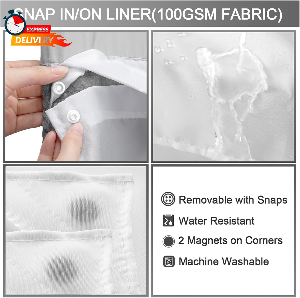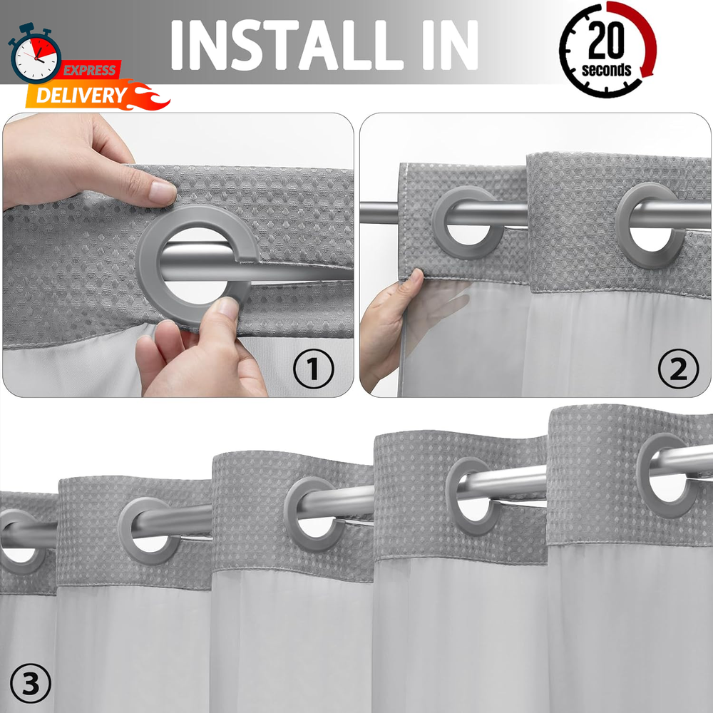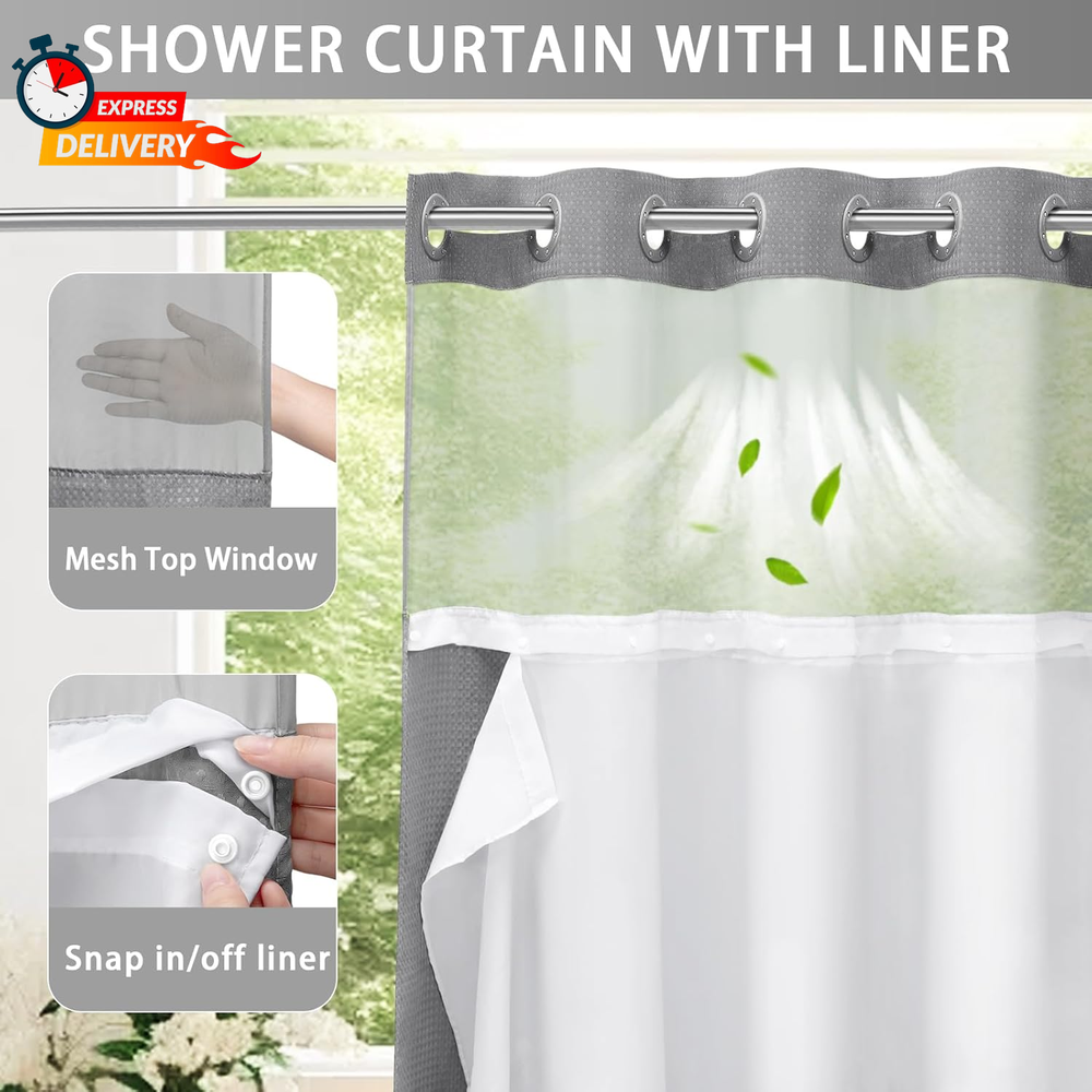 Yellyhommy Snap-in Shower Curtain Set with Grey Waffle Liner No Hook Design