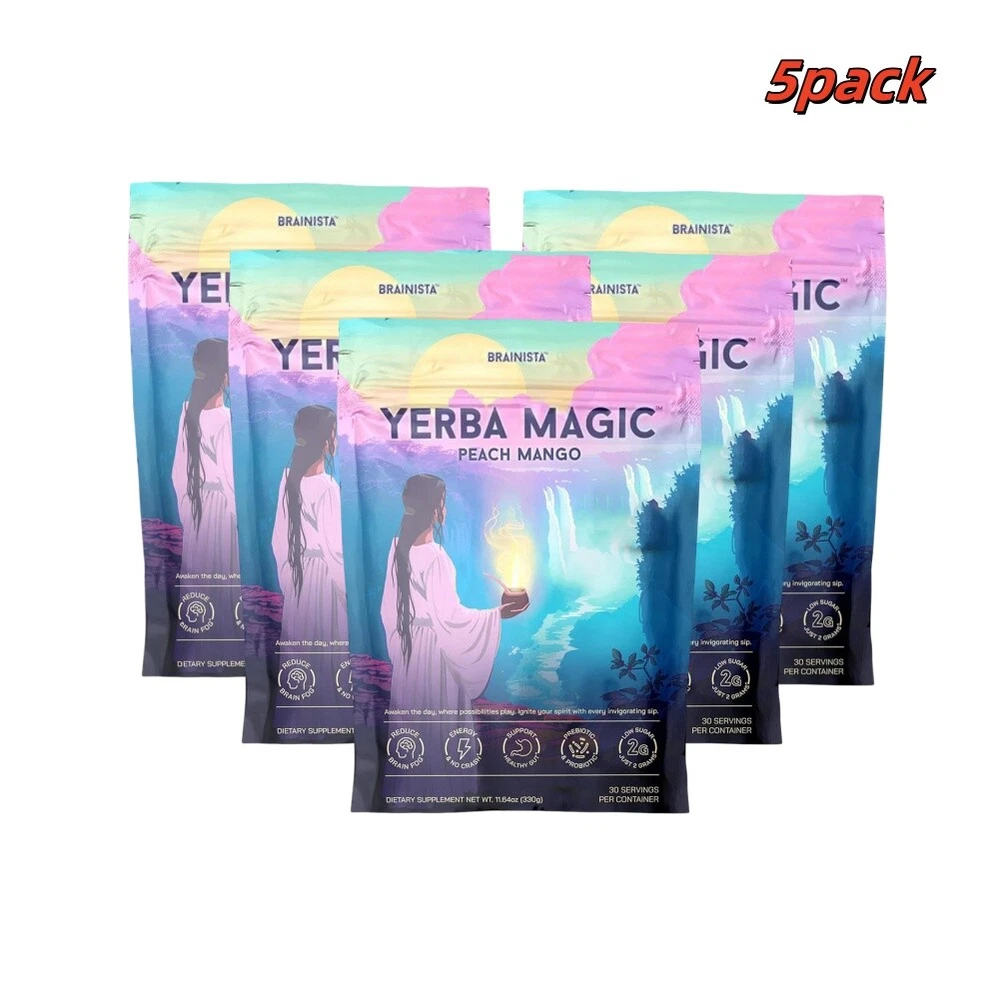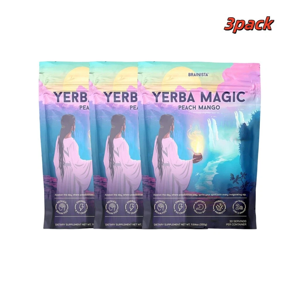 Yerba Magic Instant Tea Powder 3-in-1 Super Drink Peach Mango Probiotic Bev QX