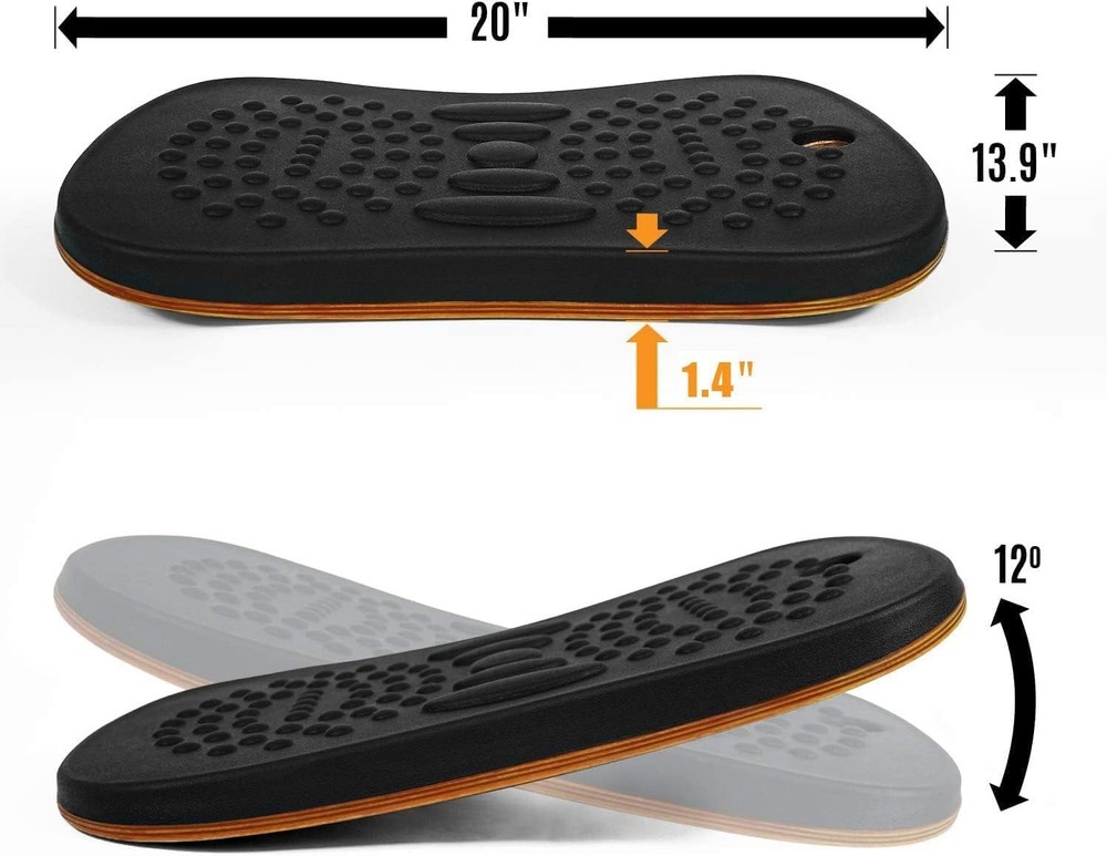 Yes4All Wobble Balance Board for Standing Desk/Anti-Fatigue Grey , Black Product Details Brand: Yes4All Color: Grey , Black Item Weight: 6 Pounds Material: Foam, Wood Product Dimensions: 20"L x 13.9"W x 2.2"H Maximum Weight Recommendation: 1.8E+2 Kilograms Age Range (Description): Adult Manufacturer: Yes4All UPC: 810019297281 Item Package Dimensions L x W x H: 20.94 x 14.33 x 3.07 inches Package Weight: 2.8 Kilograms Item Dimensions LxWxH: 20 x 13.9 x 2.2 inches Brand Name: Yes4All Model Name: SW34 Suggested Users: Balance Boards Part Number: SW34 Style: Standard Ver Included Components: 1 x Balanceboard Brand: Yes4All Color: Grey , Black Item Weight: 6 Pounds Material: Foam, Wood Product Dimensions: 20"L x 13.9"W x 2.2"H HIGH-GRADE LATEX SURFACE: Anti Fatigue Floor Mat with massage points provides a secure grip for absolute comfortable. 19.81-inch length is large enough for both feet. Support more than 400lbs PORTABLE DESIGN WITH A CARRY HOLE: With the lightweight (5.5lbs) and portable design, Yes4All Comfort Floor Mat is easy to transport and can be hung anywhere in your house or office for space-saving NON-SKID RUBBER BOTTOM: Designed with an anti-slip base to ensure comfortable during your workout. The non-skid rubber bottom helps our standing rocker works great on concrete, wood, cork, carpet, etc. MULTIPLE USES IN ONE: This steppie balance board for standing desk is also a workout board, it can be used completely as a balance board for practicing anywhere; Great for performance enhancement and balance exercises