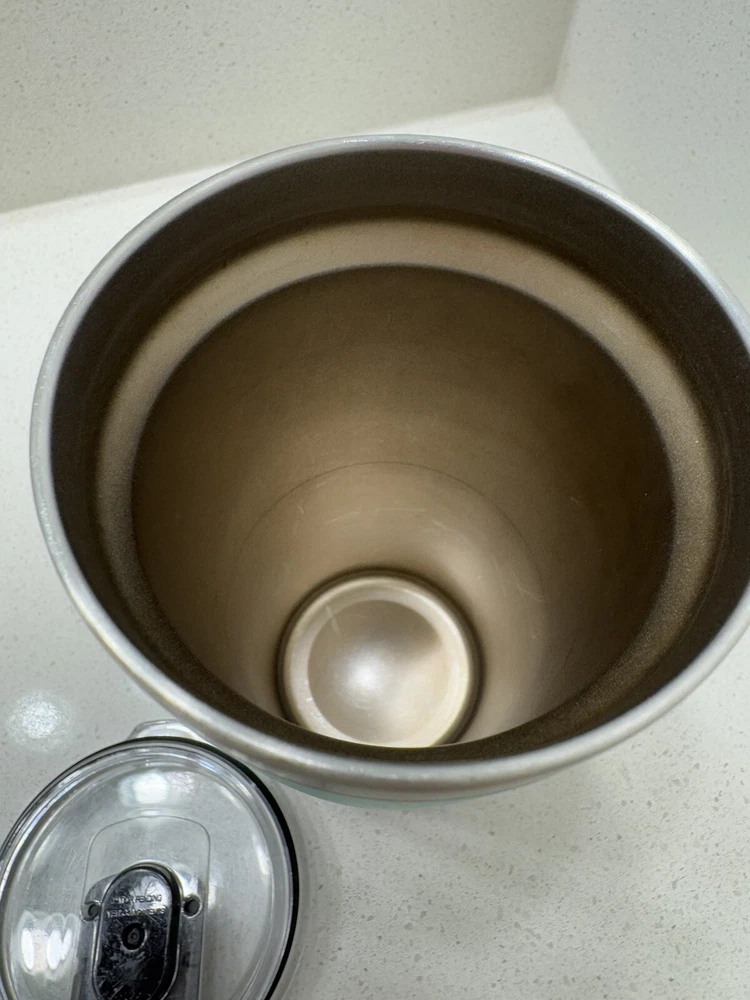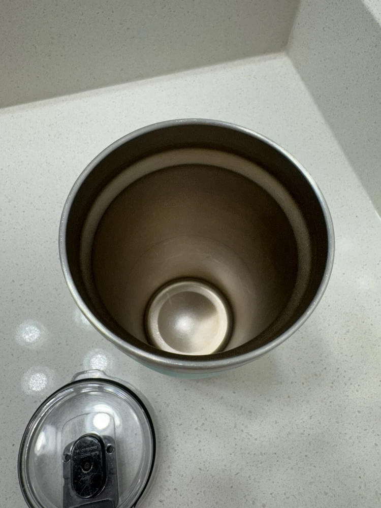 The tumbler has some scratches on the paint Some discoloring from tea and coffee The lid seal has a bit of tear
