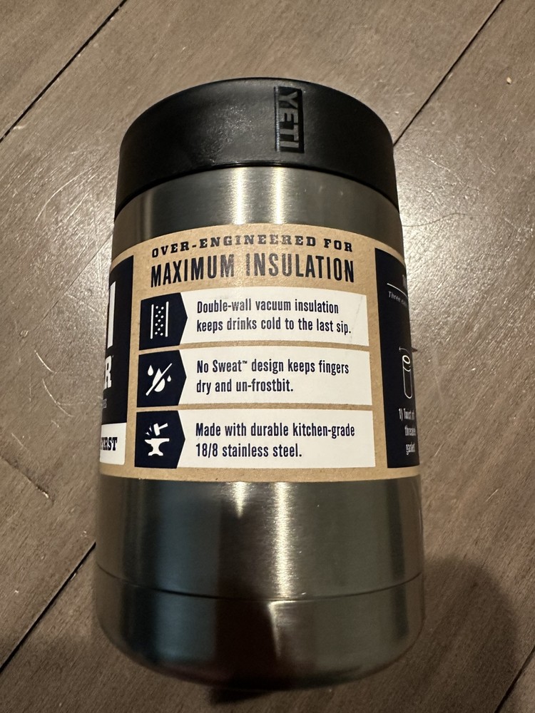 Yeti Rambler 12oz Silver Colster Stainless Steel Can Koosie Brand New