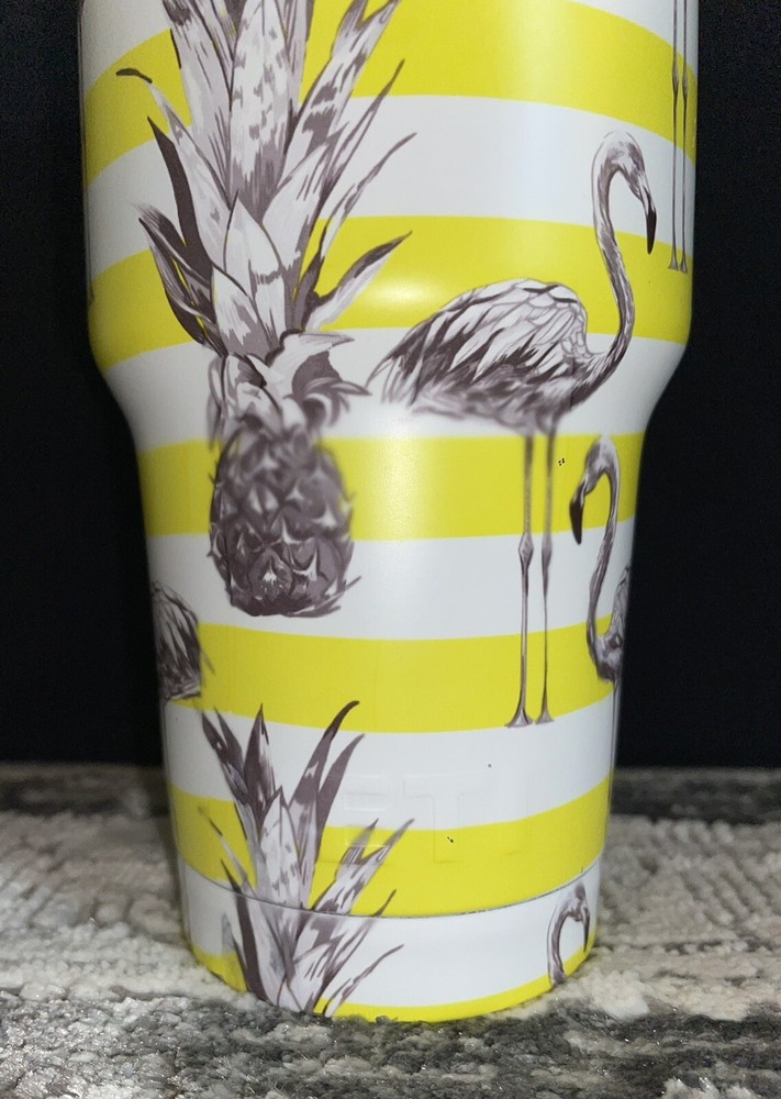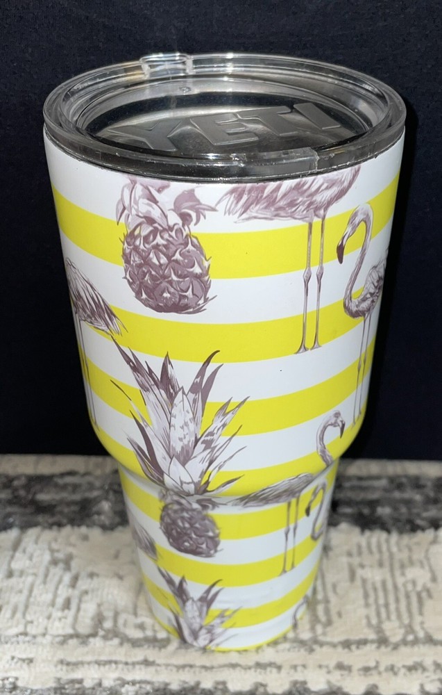 This Yeti is used and does have slight wear. It is listed at a lower price due to the wear, please see below for description of the defects. Bottom ring of the tumblers paint is pretty scratched & it’s peeled up where it says “YETI” - see picture #7 The sides of the tumbler have slight paint chips here and there, not very noticeable unless you’re really looking for them - see picture #’s 4, 5, & 6