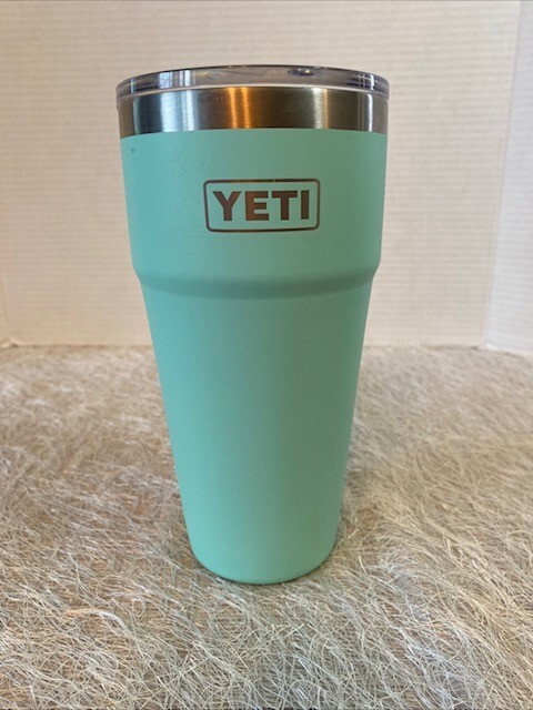The Yeti Rambler 30 oz Tumbler in Seafoam Blue is a stylish and durable travel mug made of stainless steel. It comes with a lid and does not include a straw. This tumbler is ideal for keeping your beverages hot or cold while on the go. The Seafoam Blue color adds a touch of freshness to the design, making it a practical and fashionable choice for daily use.