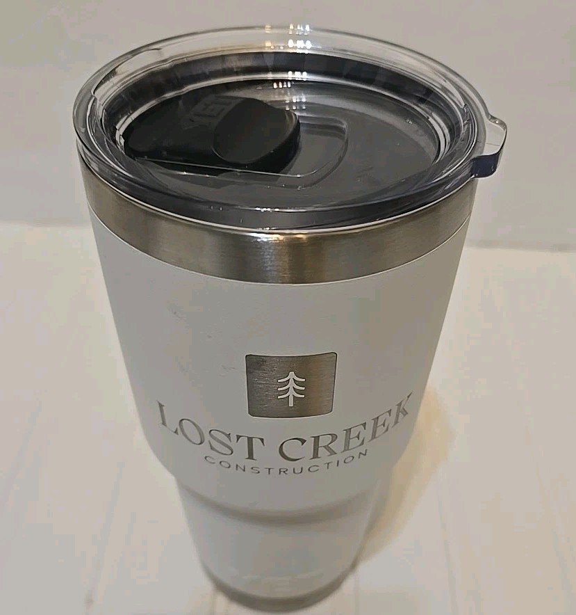 Yeti rambler 30 oz lost creek construction Dishwasher safe Hot or cold Last picture shown the condition of the rambler