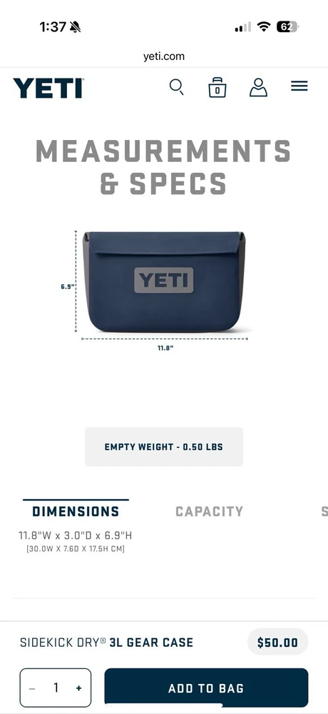 Yeti Sidekick Dry 3L Waterproof Gear Case Navy w/Gray (Brand New) 100% Authentic