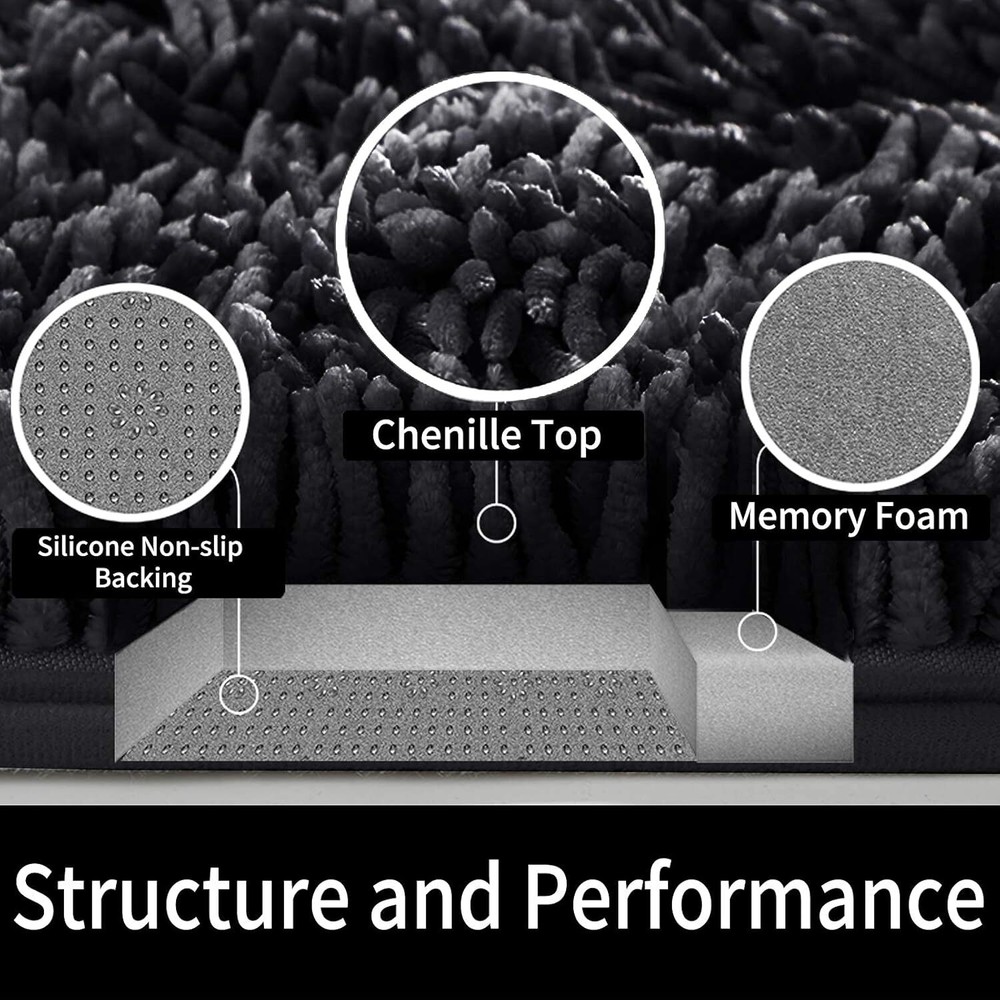 Yimobra Bathroom Rug Mat 24 X 17 Soft and Absorbent Water Non Slip Chenille Bath Chenille Super Soft Fluffy: Yimobra chenille bathroom rug has a high and shiny pile that not only looks luxurious but feels like it too. Fluffy Bath rugs so cozy and snuggly, satisfactory thickness. Please looking forward to the surprise(Like stepping into the cloud)when you get out of the bath or shower! Microfiber bath mat quickly absorbs water from your feet and shields toes from the cold hard floor Quick Water Absorption: Thick bathroom mats soak up the water while you're stepping out of the bath and keep your floor dry rely on built-in memory foam. Super absorbent rug is to dry quickly and keep floor cleanly. Perfect for bathroom, vanity, vacation home, master bathroom, kids bathroom, guest suite. Makes a great gift idea for all occasions Non Slip Backing: Non-slip bathroom rugs mats with extremely strong backing. Upgrade dense anti slip dots on the backing of the rug provide a strong grip, helping to keep it stable place on your floors. Our bathroom mat has been tested many times that its anti-slip effect is more prominent than others