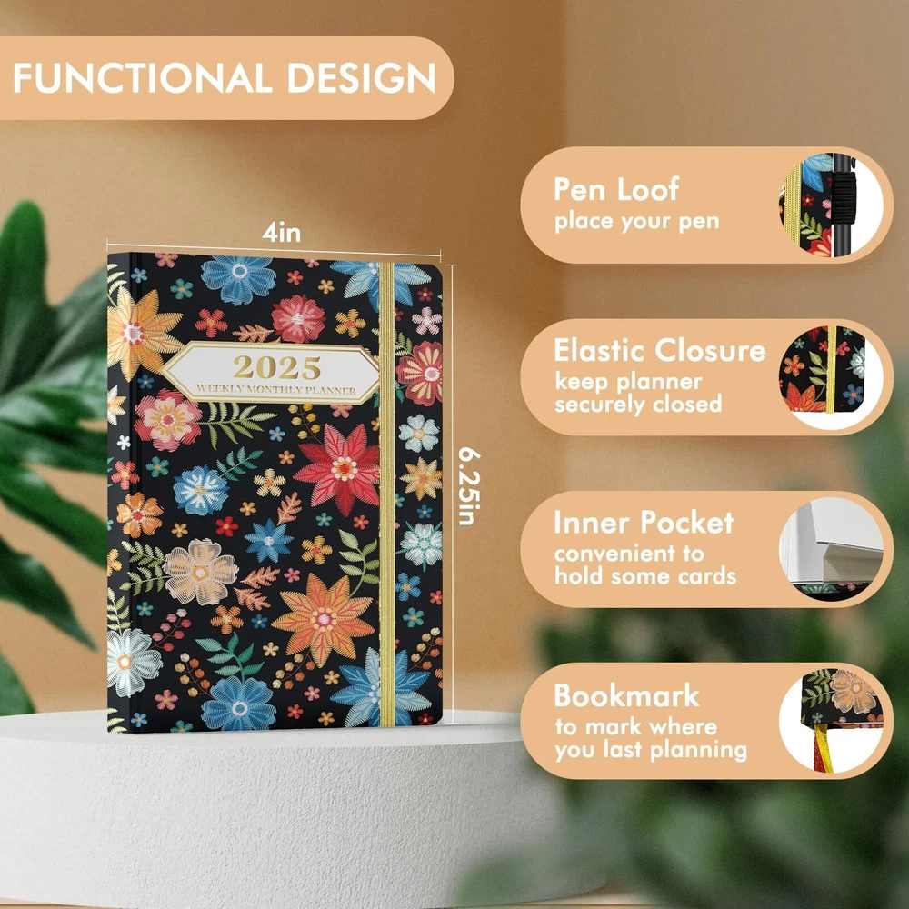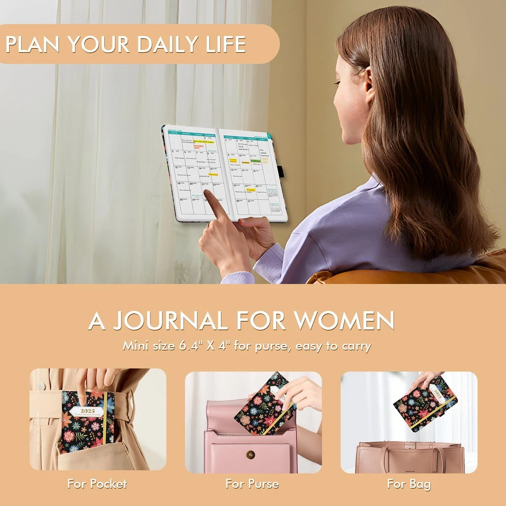 Ymumuda 2025 Pocket Planner, Weekly Monthly Planner 2025, JAN.2025to DEC.2025, 6.4×4", Mini Size for Purse, Easy to Carry, Professional Tight Binding, Small Academic Planner for Women/Girls 【YMUMUDA 2024-2025 POCKET PLANNER 】This small planner calendar 2024-2025 hardcover (6.4" X 4") features 12 months from JUL. 2024 to JUN. 2025 with weekly monthly planning pages, the pocket planner is portable, easy to carry, to help you well organized anytime anywhere. 【YMUMUDA 2025 POCKET PLANNER 】This small planner calendar 2025 hardcover (6.4" X 4") features 12 months from JAN. 2025 to DEC. 2025 with weekly monthly planning pages, the pocket planner is portable, easy to carry, to help you well organized anytime anywhere. 【 MONTHLY PLANNING 】Each monthly pages with lined daily blocks lists major US holidays and Julian dates, the calendar planner 2025 also contains a notes section and past/previous calendar reference for your better past reviewing and future planning. 【WEEKLY PLANNING】Weekly view pages contain enough ruled space for your detailed daily planning, appointments, activities and so on. Major Holidays Listed, elapsed and remaining days noted. Priorities section is designed to focus your energy on your most important goals. 【MINI SIZE, PROFESSIONAL DESIGN 】Mini size 6.4" X 4" for purse, easy to carry | Excellent cover design, comfortable texture | Professional Tight Binding, pages are not easily scattered | Premium paper, smooth writing experience | Inner Pocket, convenient to hold some cards | Weekly and Monthly Pages, ample daily blocks for your planning. 【WORRY-FREE GUARANTEE】Focus on providing small planner with excellent production and professional design. We provide 30-day quality assurance. If you're having ANY quality issues about your weekly monthly planner 2025, please contact us via amazon at first time. Shipping from the USA All of our products are shipped from the USA, ensuring quick delivery to your destination. Payment We offer the following payment methods: PayPal, credit card, bank transfer, and eBay's secure payment system. Free Shipping & Free Returns Shipping within the USA is FREE. Additionally, any return is absolutely free for you. Risk-Free Purchase You have the option to return an item within 30 days without any justification. We cover the return shipping costs! Fast Shipping We ship immediately upon receipt of payment. Generally, the package is delivered within 2-3 days in the USA. If it takes longer, we will contact you. Quality and Costs Made in Europe, USA, China No customs fees or additional charges Total satisfaction guarantee Invoice with declared VAT available upon request in .pdf format Feedback Your feedback is very important to us. After you pay for your purchase, you will automatically receive positive feedback from us.