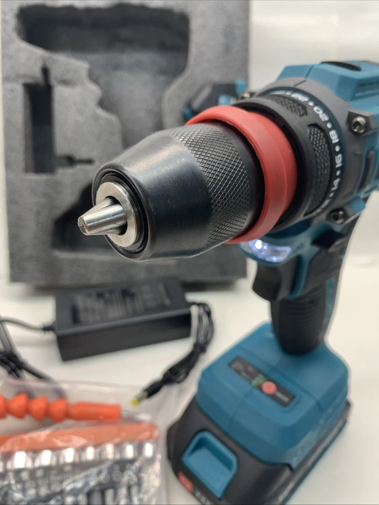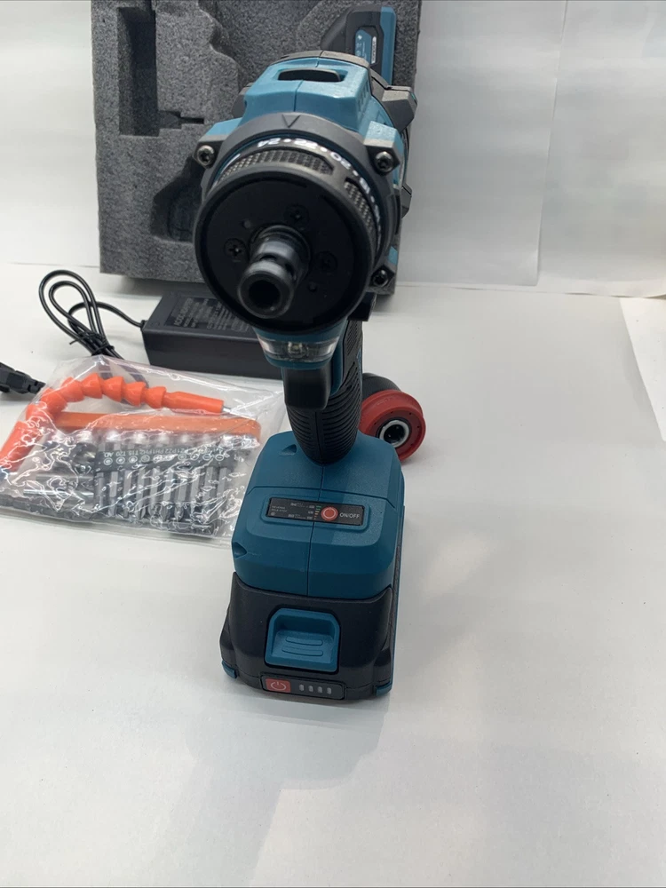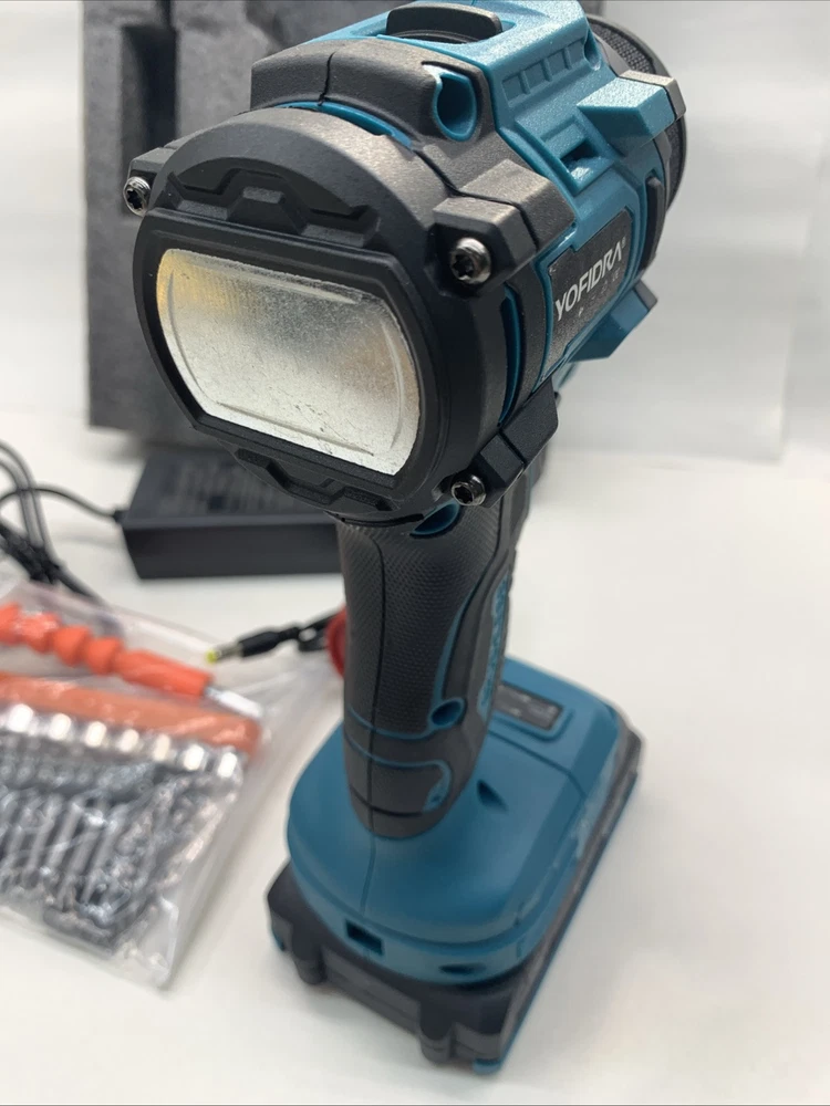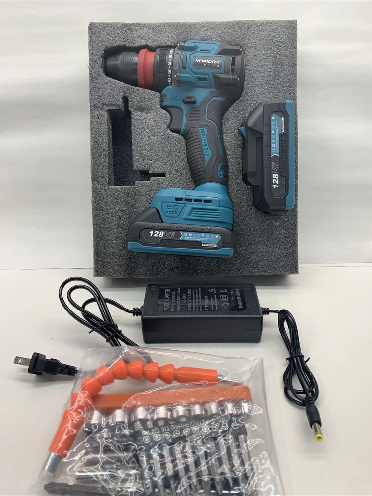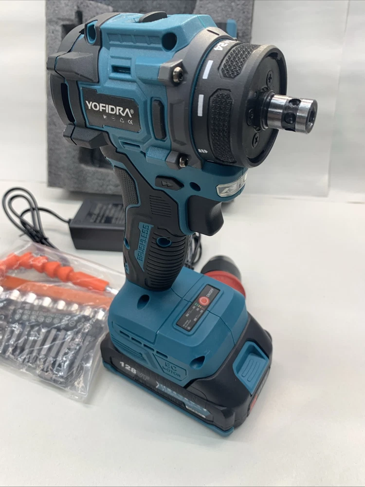 The Yofidra 10mm 18 Volt Power Drill is a lightweight cordless drill with a brushless motor and two 18V Lithium-Ion batteries included for quick charging in just 1 hour. It has a 1/4 inch keyless chuck, operating at a speed of 3600 RPM, making it efficient for various drilling and screwdriving tasks. The set includes a battery charger, extension rod, socket connector, drill bits, screwdriver bits, and other attachments, providing versatility for different projects. With a 1-year manufacturer warranty, this blue drill from Yofidra is a reliable choice for DIY enthusiasts and professionals alike. Sorry no case. Will ship out next day after full payment. PayPal please.