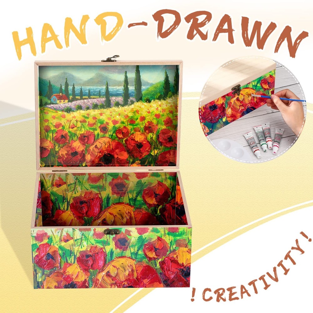 Yookeer 2 Pcs Large Unfinished Wooden Box with Hinged Lid and Front Clasp, Rectangle Unpainted Crafts DIY Wood Boxes Treasure Chest Stash Box for Art Gifts Jewelry Home Storage, 10.6x8.1x5.7 Inch Product Details Number of Items: 2 Brand: Yookeer MPN: Wooden Box UPC: Does not apply EAN: Does not apply Brand: Yookeer Material: Wood Special Feature: Lockable, Portable Style: Modern Recommended Uses For Product: Home Brand: Yookeer Material: Wood Special Feature: Lockable, Portable Style: Modern Recommended Uses For Product: Home Product Dimensions: 10.6"L x 8.1"W x 5.7"H Capacity: 5.7 Pounds Closure Type: Hinge Water Resistance Level: Not Water Resistant Item Weight: 1 Pounds Opening Mechanism: Hinge Shape: Rectangular Pattern: Solid Number of Items: 2 Number of Compartments: 1 Unit Count: 2.0 Count Item Package Quantity: 1 Material Feature: Little wood smell, smooth surface, stable, firm, not easy to break or rust Item Weight: 1 pounds Manufacturer: Yookeer Country of Origin: China Item model number: Wooden Box Date First Available: July 5, 2022 Package Information: this set contains 2 pieces of wood boxes for crafts; Each box is about 10.6 x 8.1 x 5.7 inches/ 27 x 20.5 x 14.5 cm in external dimension, and 10 x 7.5 x 5.4 inches/ 25.5 x 19 x 13.7 cm in inside dimension; You can paint, carve, decorate, pyrography or engrave them, and make them into distinctive boxes Decorative Wooden Box: the wood box with lid is made of natural wood with a smooth surface, you can paint your favorite patterns on it or stick your favorite stickers, carving, branding or decoration, making it different from others Wooden Box Lock: this unfinished wood box has a lock, quality hinges and locks to prevent opening, so that the things you put inside will not fall out, making it more convenient for you to store items Multiple Application Scenarios: these wooden keepsake boxes can be applied as your gift boxes, jewelry boxes, tarot boxes, treasure chest, storage boxes, proper for wedding centerpieces, organizing photos, jewelry, souvenirs, Christmas gifts and so on Reliable Material Selection: our wooden storage box is mainly made of paulownia wood, which has little wood smell, smooth on surface, stable and firm, not easy to break or rust, offering a long service time Features: This wooden box with hinged lid provides enough storage space. Moreover, the hinged lid and front clasp make a strong sealing performance, helping you to store things more safely and conveniently. Our craft boxes with lids are suitable for birthday gifts, wedding or baby keepsakes, jewelry boxes, and home storage, also nice for DIY craft hobby projects. Specifications: Main material: paulownia wood Shape: rectangle External dimensions: about 10.6 x 8.1 x 5.7 inches/ 27 x 20.5 x 14.5 cm Inside dimensions: about 10 x 7.5 x 5.4 inches/ 25.5 x 19 x 13.7 cm Package includes: 2 x Unfinished wooden box with hinged lid Notice: It is advisable that you check the size carefully before ordering. Manual measurement, please allow slight errors on size.