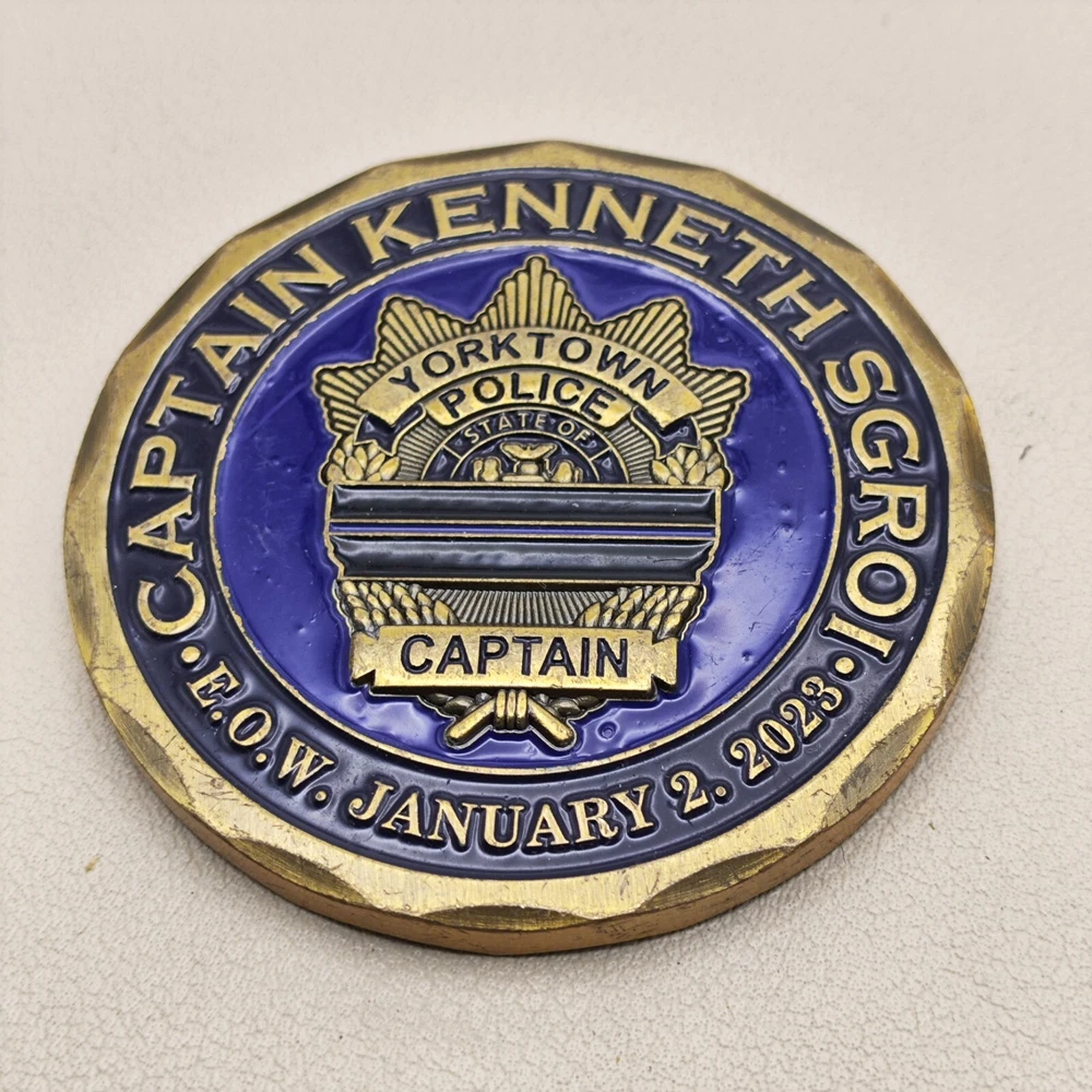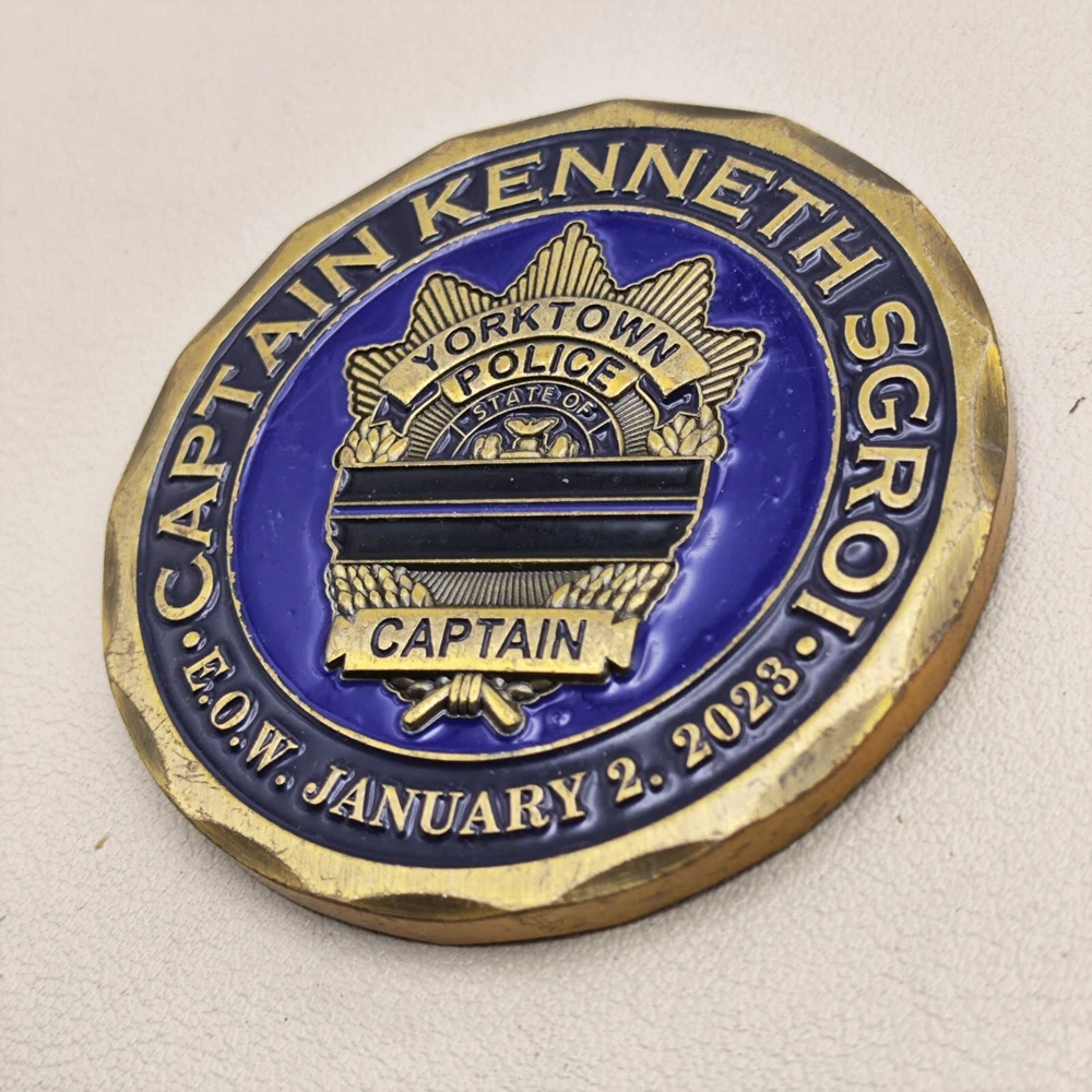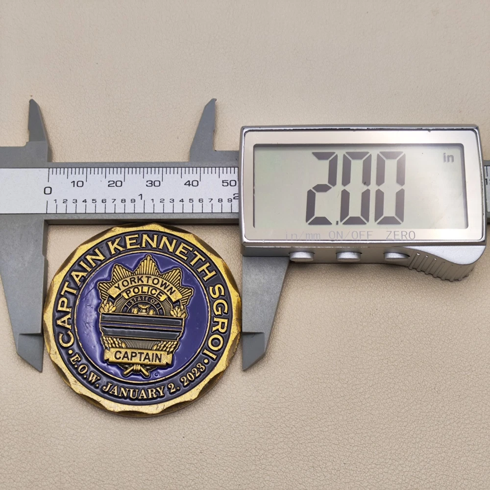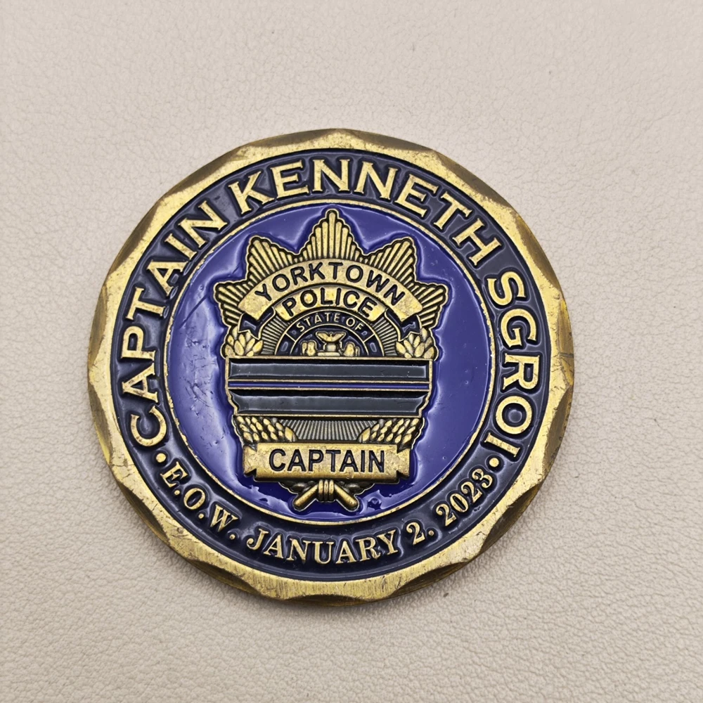 TITLE: York Town Police Department Captain Challenge Coin SIZE : Measures Approx 2 " Used coins are inevitably flawed please see pictures PAYMENT : We support multiple payment methods and ship within 5 days of payment SHIPPING : We offer free shipping, and your purchase will be carefully packaged and sent to you with tracking information through eBay SERVICES : You can contact us at any time if you have any questions, We will get back to you as soon as possible to solve your problem If you are not satisfied with your purchase for any reason, Please contact us before leaving neutral or negative feedback and we will solve the problem properly for you