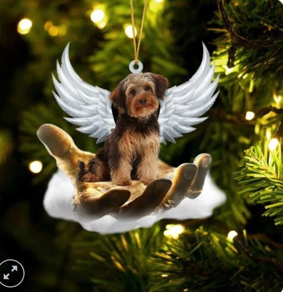 Yorkiepoo On The Hands Of Jesus Ornament, Christmas Ornament, Dog dog