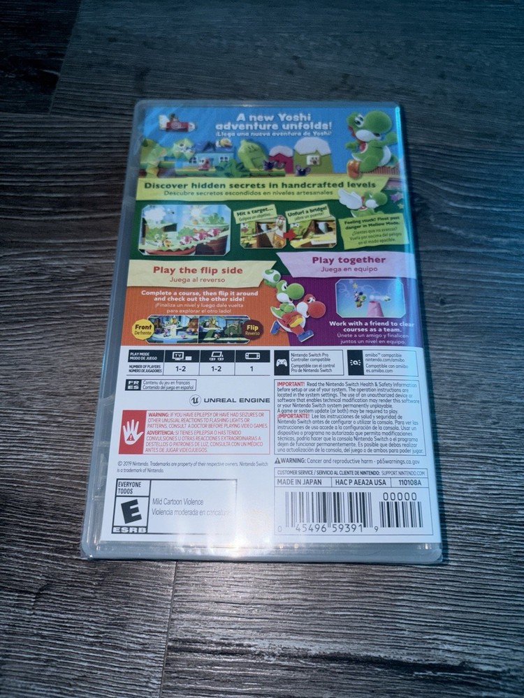 Yoshis Crafted World is a 2019 action-adventure game for the Nintendo Switch platform, published by Nintendo. The game features multiplayer gameplay and is rated E for Everyone. Players can explore a beautifully crafted world made from everyday materials, solving puzzles and completing challenges with their favorite Pokémon, Yoshi. With intuitive controls and charming graphics, Yoshis Crafted World offers a delightful gaming experience for fans of all ages.