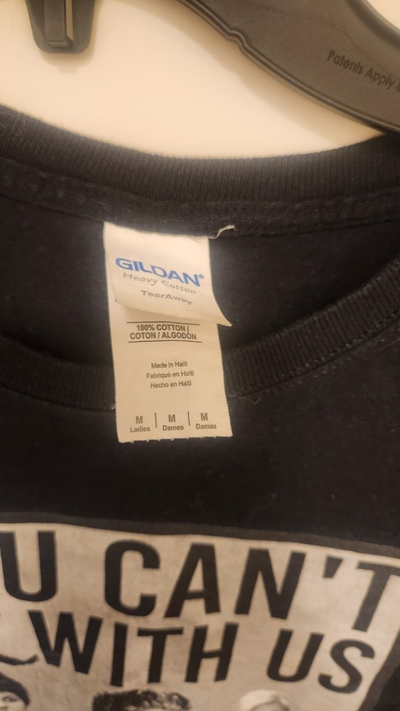 The "You Can't Sit With Us Halloween Version Hocus Pocus Shirt" is a unisex adults' crew neck T-shirt in size S, featuring a graphic print design with movie characters. Made from heavyweight cotton material, this black shirt is suitable for all seasons and can be machine washed for easy care. With accents like buttons and logos, this Gildan shirt is part of the Gildan 5000 product line and can be personalized to your liking. Perfect for fans of funny, 90s themes, this shirt is a great addition to your wardrobe.