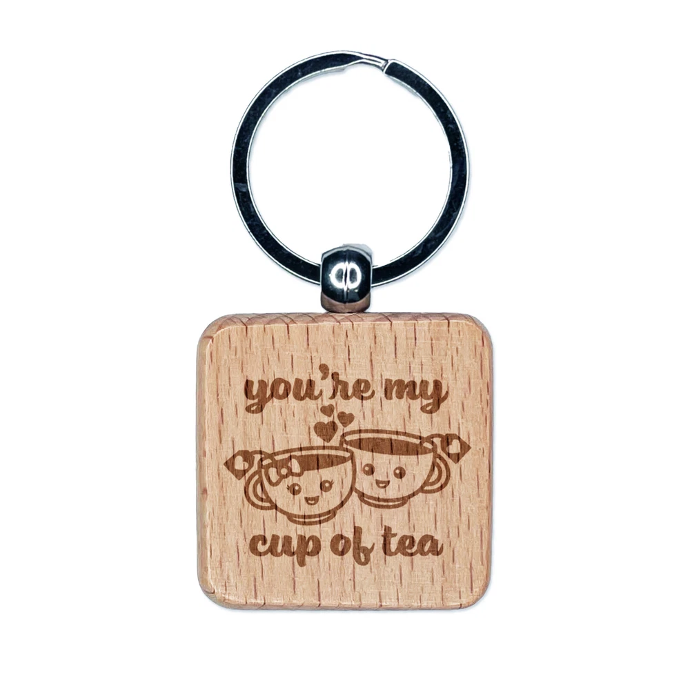 You're My Cup of Tea Love Engraved Wood Square Keychain Tag Charm