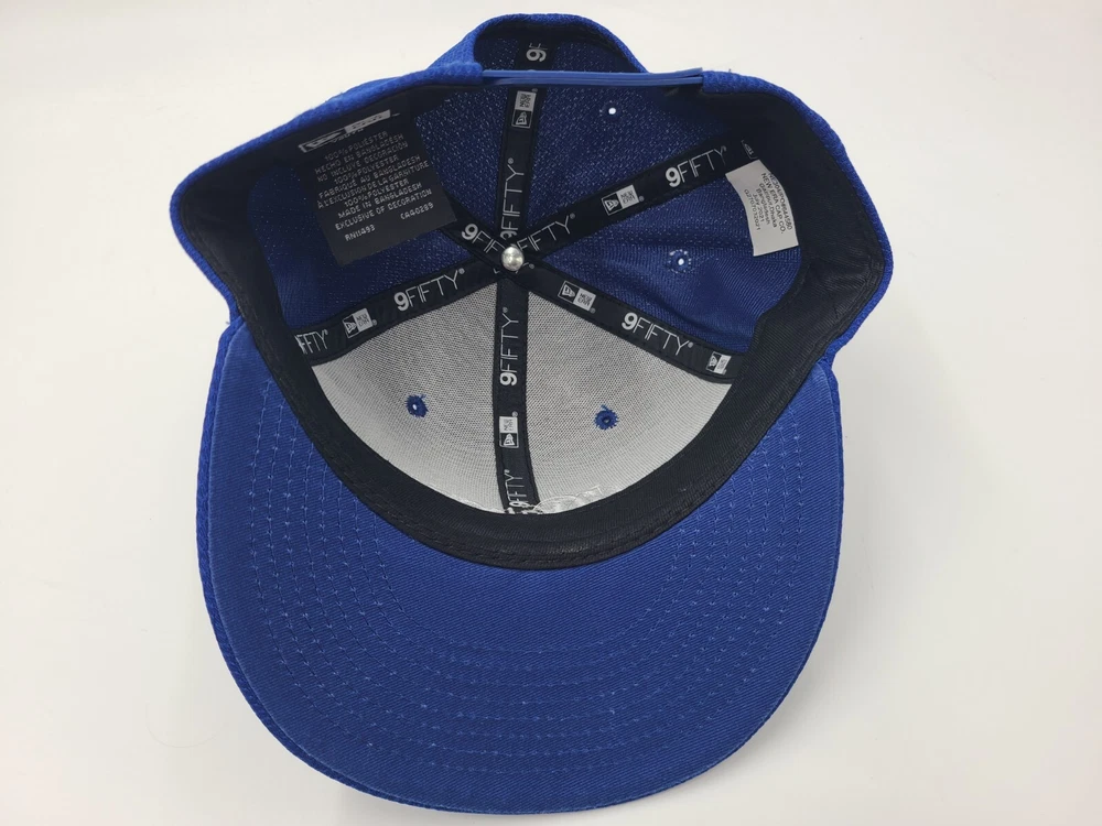 Has some wear underneath the brim as seen in photos. Youth JL Sports New Era 9Fifty Snapback Hat Cap Baseball Child Boys Girls Blue. EACH ADDITIONAL HAT PURCHASED IS ONLY $1 ADDED SHIPPING!