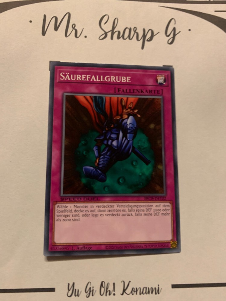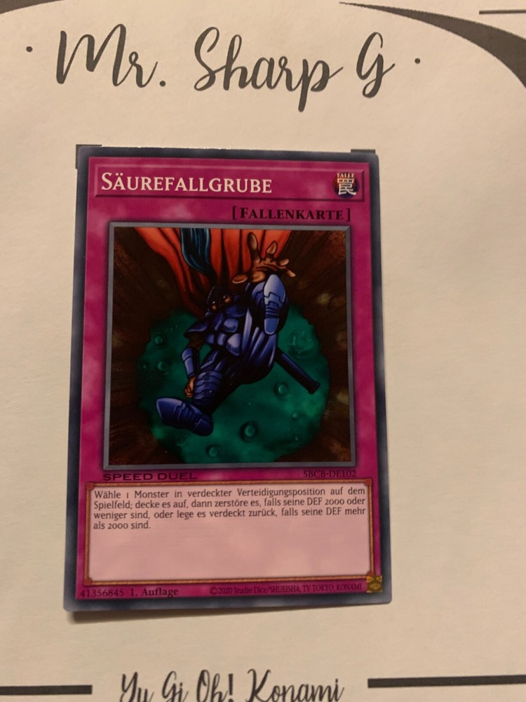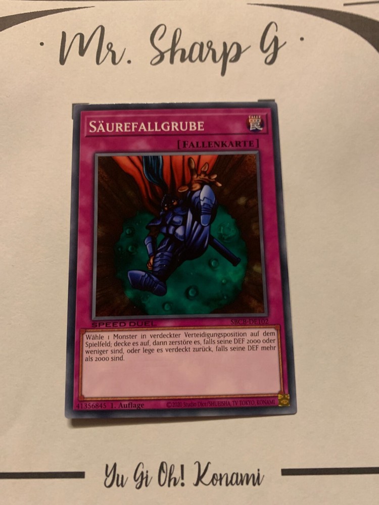 - Mr. Sharp G - - Online Store - TRADING CARDS-TCG-COLLECTION-SETS-TOURNAMENT-Yu Gi Oh! Konami * * * SÄUREFALLGRUBE - 1. AUFLAGE SPEED DUEL SBCB-DE102 - Bitte schauen Sie sich die beigefügten Bilder an, um einen vollständigen Überblick über den Zustand jedes Artikels zu erhalten. - Zustand des Artikels: Neu* - in einem neuwertigem Zustand. (* Neuer Zustand - kann aber leichte Mängel wie 'whitening', leichte Eindrücke, Dellen u.a. haben - die von der Herstellung der Karte aus Produktion stammen, bitte den Bildern und in der Beschreibung den Zustand entgegennehmen) - Typ/ Serie: FALLENKARTE / 1. AUFLAGE SPEED DUEL SBCB-DE102 - Seltenheitsstufe/ Rarity: COMMON - Edition : SPEED DUEL: BATTLE CITY BOX / 2020 * * * + Kartenschutzhülle & Toploader inklusiver im Preis + mehrfache Bestellung = einmalige Versandkosten + versicherter Versand Bestellung in Höhe - v. 8,50EUR in Deutschland/ Inland - v. 12,50EUR im Ausland/ International + Großbestellungen kostenloser Versand Inland und International - Bei Fragen, Details, nicht im Bestand gewünschte Karten/ Artikel oder Versandgutschriften schreiben Sie uns! Wir freuen uns auf Ihre Nachricht! - Vielen Dank für Ihr Vertrauen, Unterstützung und Besuch in unserem Store ! - Ihr Mr. Sharp G Team