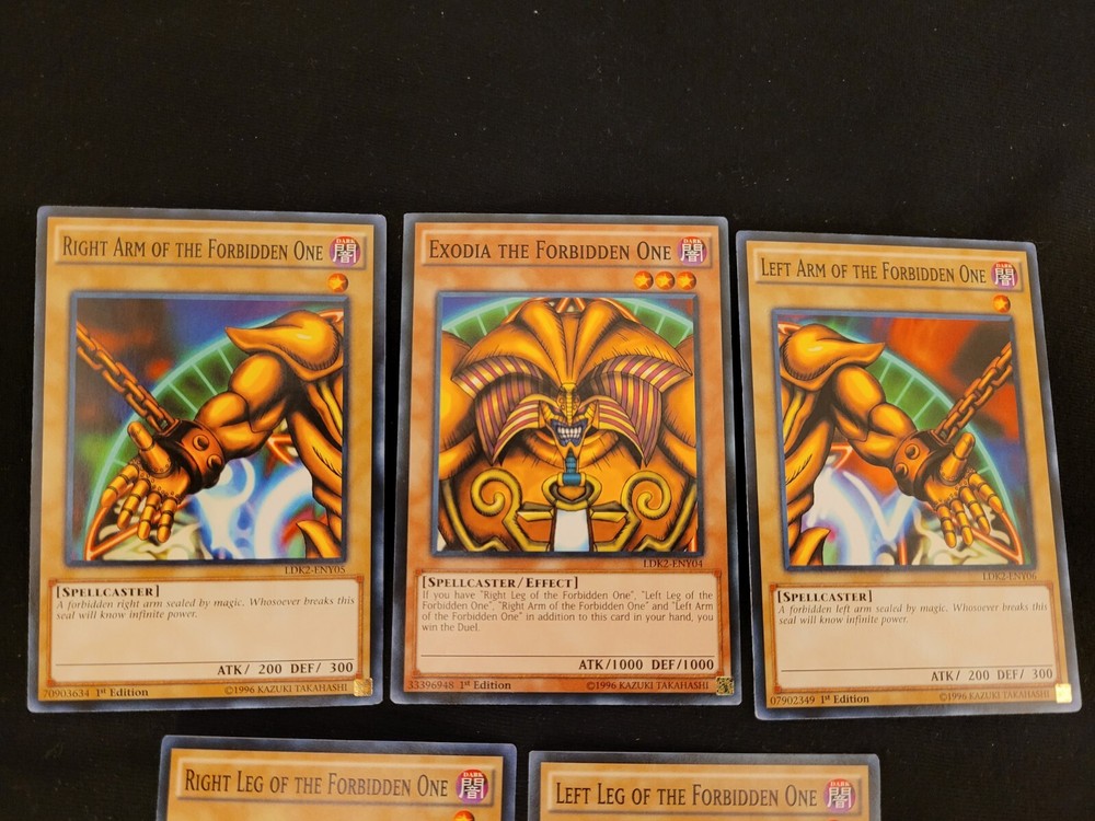 Yugioh Exodia The Forbidden One Set LDK2-ENY04-08 | Common 1st Edition FAST SHIPPING NM Full Exodia set from Legendary Decks II 1st edition. Cards pictured will be the cards you recieve. Cards will be shipped sleeved in a shipping shield in a bubble mailer with tracking included. If ordered before 2pm HST, your order will be shipped on the same day.