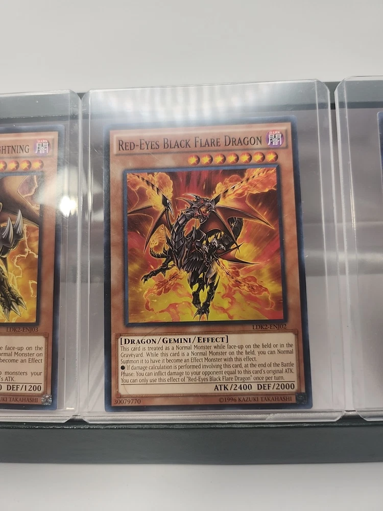 The Yugioh Red Eyes Dragon Lot 2 consists of 3 standard-sized Yu-Gi-Oh! TCG cards manufactured by Dragon. The cards are in English and of normal type. This lot is ideal for collectors or players looking to enhance their deck with powerful Red Eyes Dragon cards.