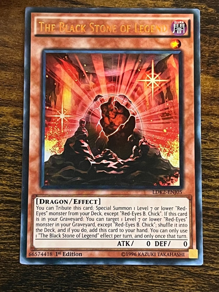 Yugioh CardsLIKE NEW ConditionMixed Lot of 10 Cards: -The Black Stone Of Legend LDK2-ENJ05 - 1st Edition Ultra Rare -Red-Eyes Wyvern ANPR-ENSE2 - LIMITED EDITION Super Rare -Trident Warrior BP03-EN075 - 1st Edition Rare -Herald Of Orange Light BP03-EN050 - 1st Edition Rare -Token LDK2-ENT01 - LIMITED EDITION Ultra Rare -Red-Eyes Black Flare Dragon LDK2-ENJ02 - 1st Edition Common -Dragon Shrine Spell Card DPRP-EN029 - 1st Edition Rare -Red-Eyes Blac Dragon Sword DRL3-EN066 - 1st Edition Ultra Rare -Dark Magician Of Chaos DPRP-EN013 - 1st Edition Rare -Meteor Dragon Red-Eyes Impact INOV-EN028 - 1st Edition RareYou are purchasing a mixed Yu-Gi-Oh! card Lot. All the cards appear to be in really good shape & condition.Don't like the price? Make an offer! Most reasonable offers are accepted:)What you see is what you get.