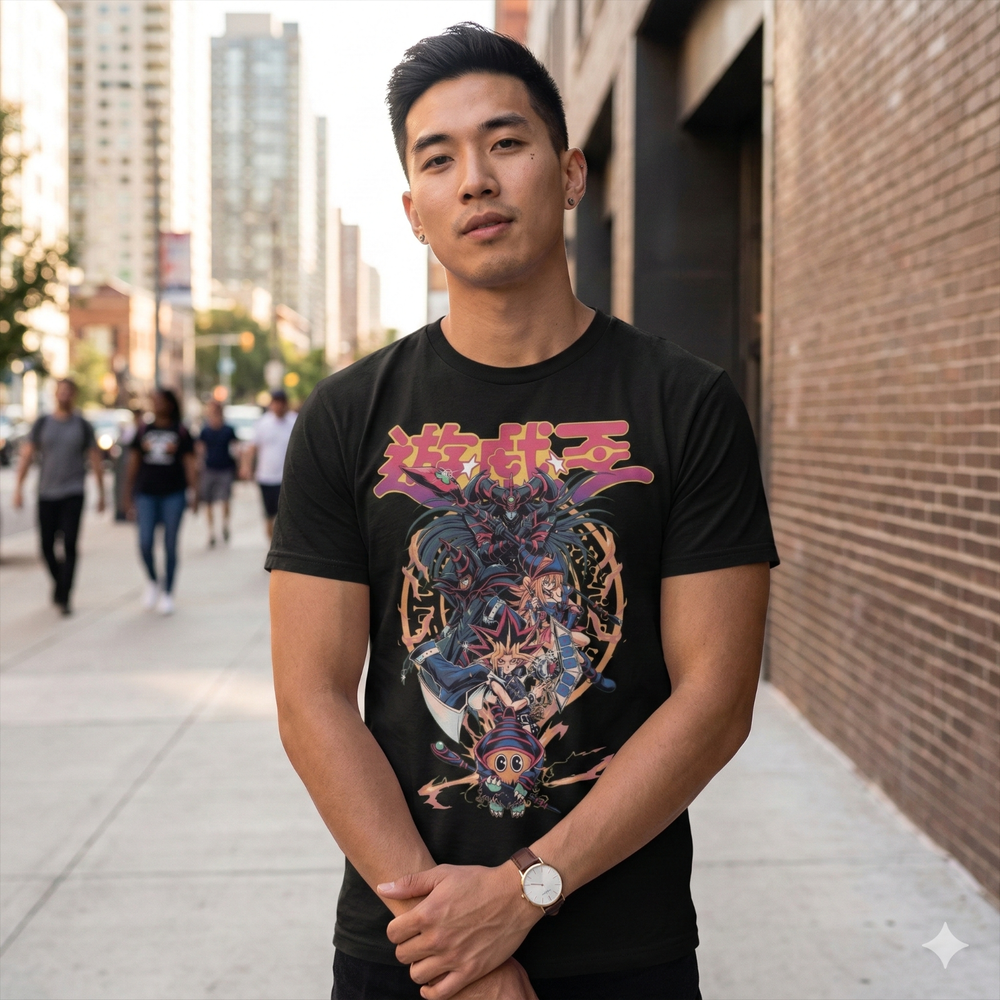 Yugioh Inspired Fan Art Tee Turn heads with this bold anime-inspired graphic t-shirt, featuring a dramatic illustration inspired by Yugi. Printed on a classic black unisex tee, this design blends anime culture with streetwear attitude for a clean, standout look. Perfect for anime fans, conventions, casual outfits, or as a unique gift, this shirt delivers comfort, durability, and high-detail artwork that lasts.