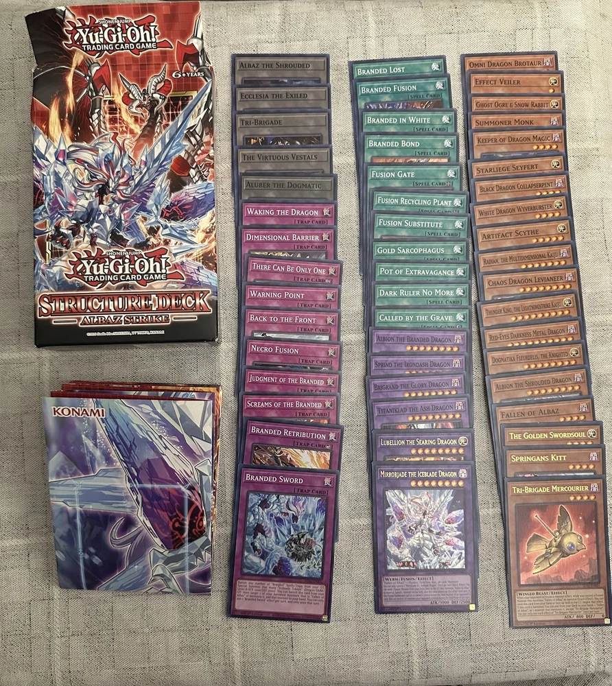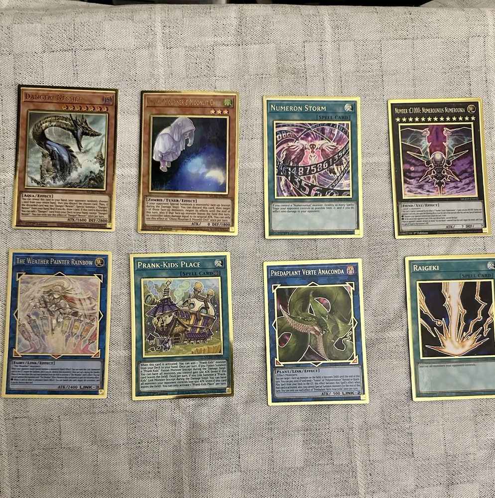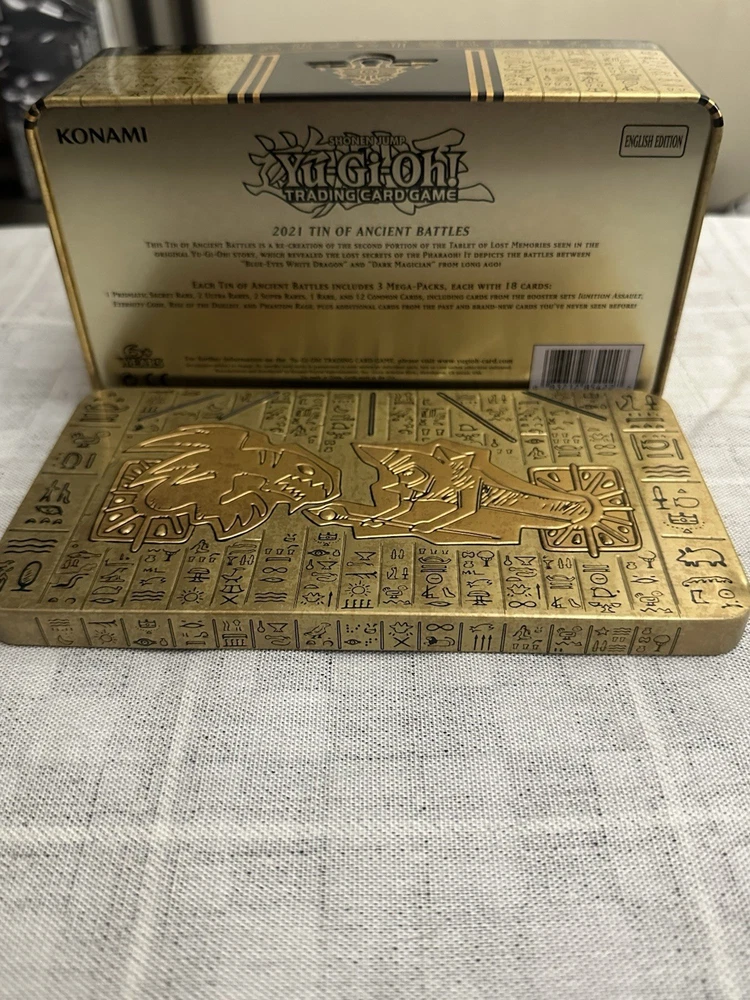Yugioh collection of over 700 cards. NOT JUST BULK! This was my personal collection when I tried to get back into the game a few years ago and just didn’t stick with it. Perfect for anyone just trying to add to their own collection or for someone just starting out! Almost all the cards are completely unplayed besides the structure deck. What’s included in this lot is: -Over 700 cards from different sets (heavy on the Hidden Arsenal set,2021 Tin of Ancient Battles,Legendary Duelists: Synchro Storm and a few other sets from around that time) This includes tons of foils/holos/commons/rares/super rares/ultra rares/secret rares/prismatic rares. -8 Maximum Gold: El Dorado premium gold rares The Raigeki does have a small chip in the bottom left corner. See attached picture. -Structure Deck: Albaz Strike Complete deck and 2 sided playmat. It was used by myself a handful of times but all the cards are still in excellent condition. The beginners booklet is missing from it. -2021 Tin of Ancient Battles *Empty Tin* Tin has a small dent in the corner of the lid, as shown in picture, does not effect its opening and closing. -4 sleeve packs (50 count each) 3-I.p.masquerena and 1-kuriboh dark magician
