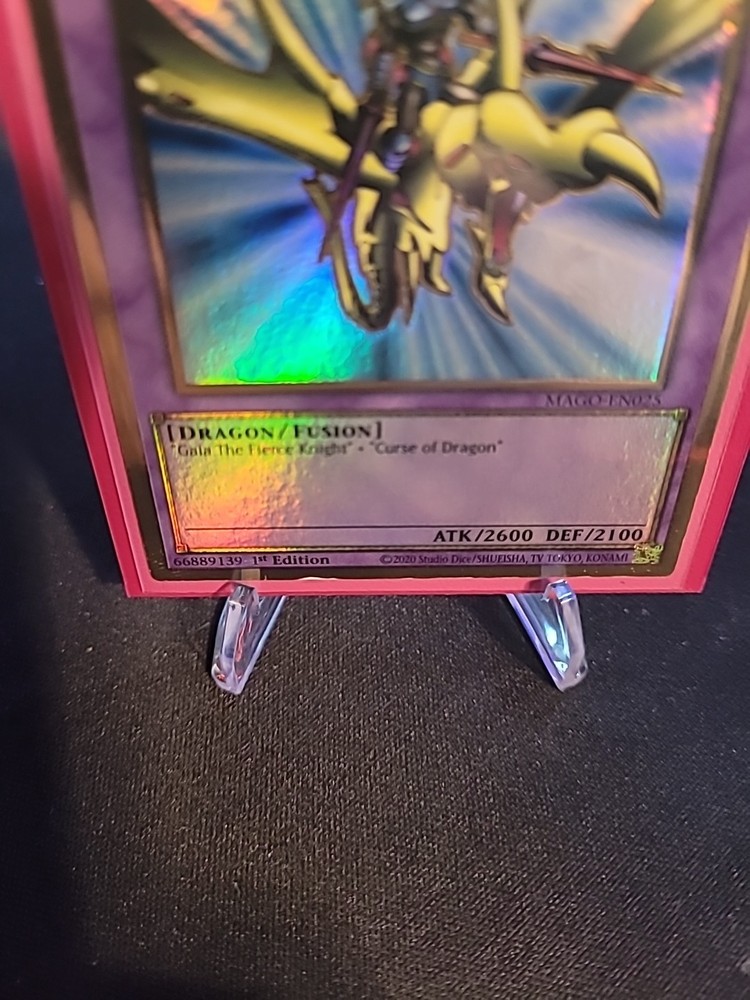 MAGO-EN002 Maximum Gold 1st Edition Lot of Cards (Dark Magician & Red Eyes More) The Gaia card does have a chip on the bottom that can be seen in the picture