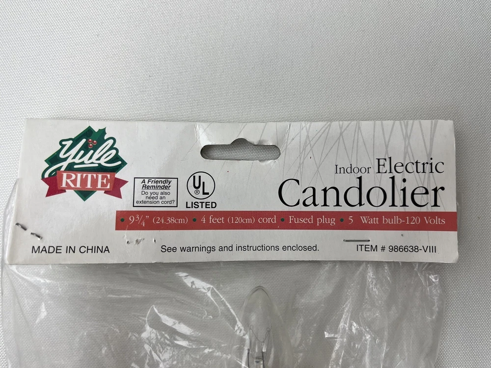 Yule Rite Indoor Electric Candolier Original Packaging Christmas Decor