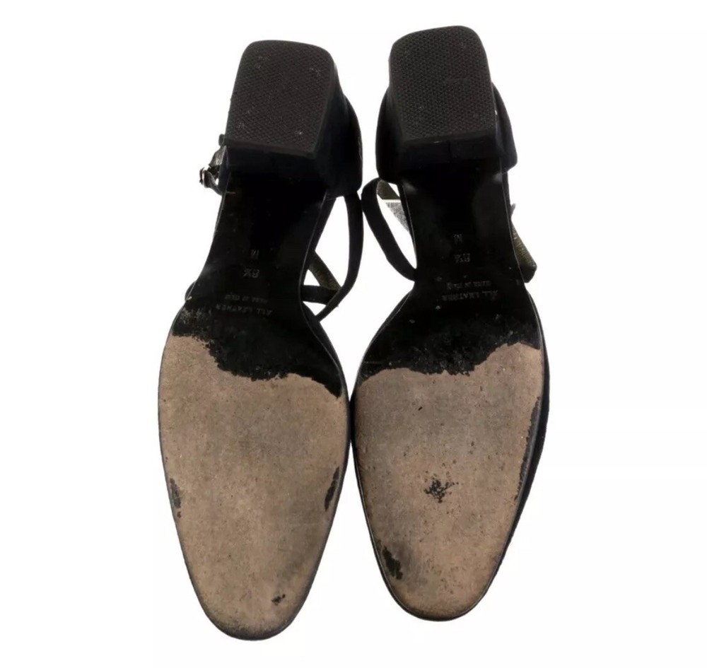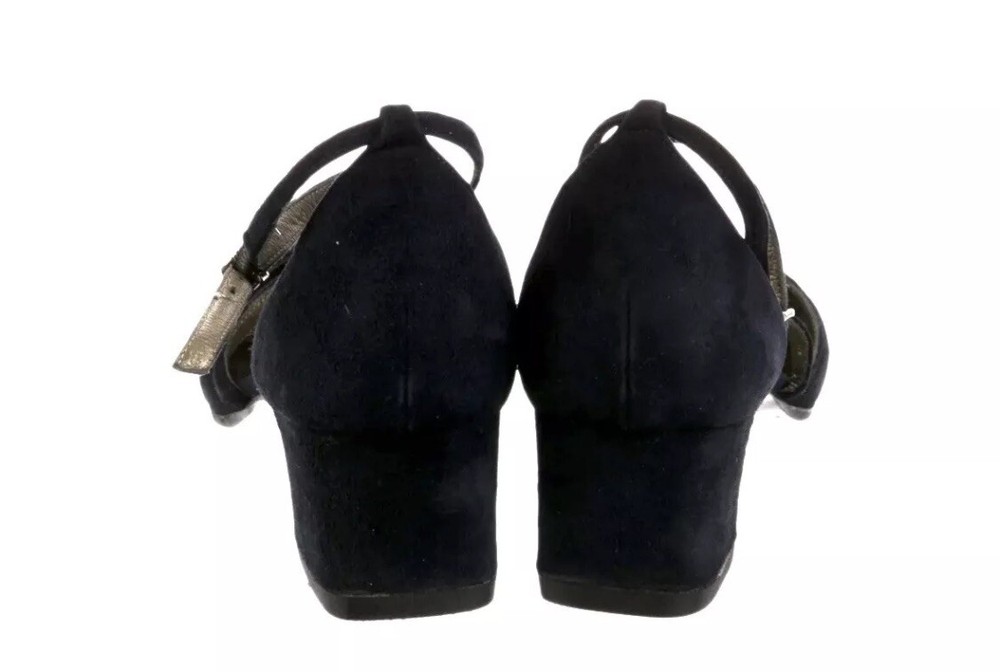 These Yves Saint Laurent vintage suede pumps are a stylish choice for women in size 6.5. The blue color and suede material give them a luxurious and elegant look, perfect for formal occasions or adding a pop of color to any outfit. The pump style and brand reputation of Saint Laurent ensure a high-quality and fashionable addition to any woman's shoe collection. Pre owned Description • Yves Saint Laurent Vintage Pumps • Blue Suede • Semi-Pointed Toes • Crossover Straps & Buckle Closure at Ankles Designer Fit: Pumps by Yves Saint Laurent typically run a half size small. Estimated item measurements Heels: 1.75" Gender: Women Details: Heavy discoloration at insoles; moderate creasing at vamps; moderate residue at insoles; wear at soles