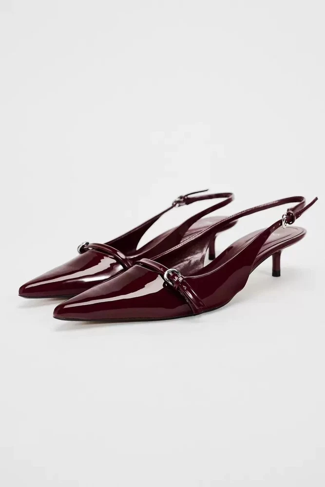 These heels are absolutely stunning! The red buckle adds such a chic pop of color, and they're surprisingly comfortable for all-day wear. Perfect for dressing up any outfit!