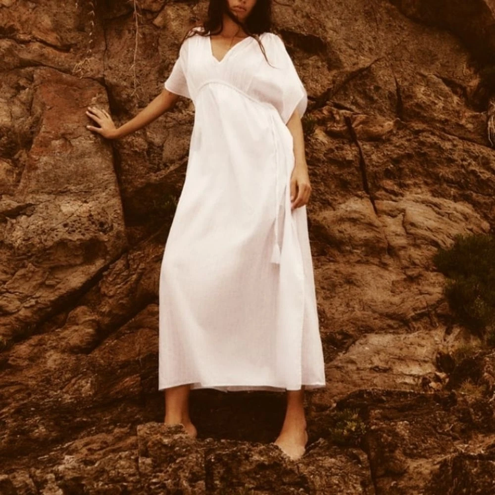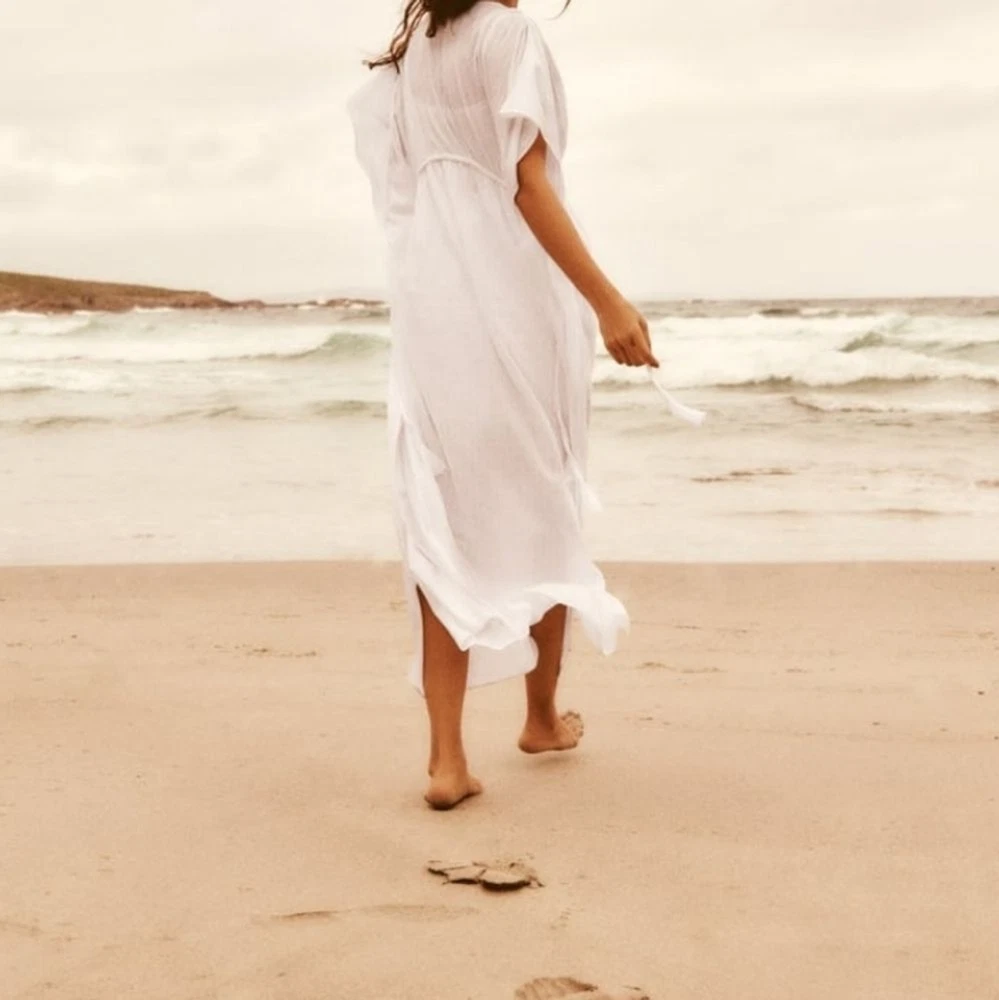 short sleeves kaftan summer dress. v-neckline with side ties. interior lining, side slit lightweight, oversized, beachy, coastal grandma 100% cotton