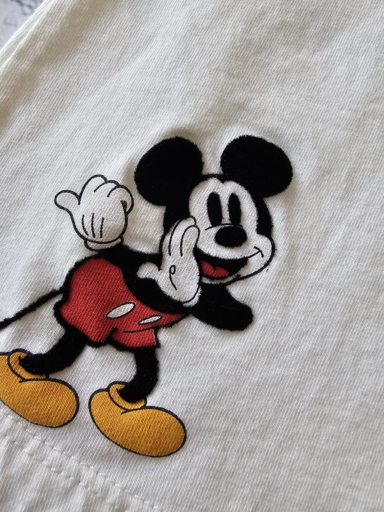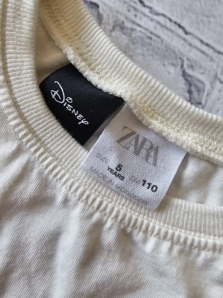Description: Bring some Disney magic to your child’s wardrobe with this adorable ZARA Kids Mickey Mouse short-sleeve T-shirt. Featuring a cheerful "Fun Awaits" and "Everyday is Funday" graphic print of Mickey Mouse in vibrant red, yellow, and black tones. Brand: ZARA Kids (Disney Collection) Size: 5 Years / 110 cm Material: Main fabric: 100% Cotton Secondary fabric: 98% Cotton, 2% Elastane Color: Off-white / Cream Made in: Morocco Condition: Pre-owned, gently used, in good condition. No holes or major stains. Minor signs of wear consistent with normal use. Care Instructions: Machine wash cold, tumble dry low, do not bleach (see care tag for details). Perfect for everyday wear, playtime, or Disney fans of all ages. Your little one will love the comfortable fit and fun design!