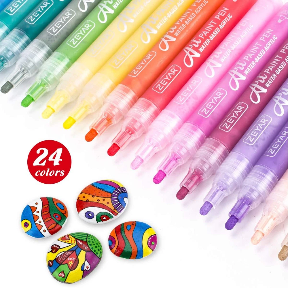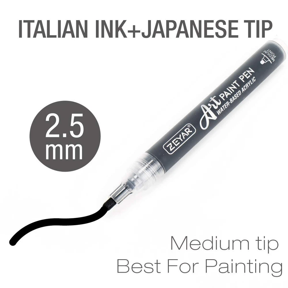 ZEYAR is a professional art&crafts artwork manufacturer The world of science is full of many beautiful colors! Some of the colors in our world cannot be seen with just your eyes, but we are trying to give you more colors for your options. Vibrant 18 colors: This size pen is ideal for the detailing and outlining you're likely to do. Made with Water-Based ink and Acrylic material tips, which can help create a colorful world, give you more options to improve your imagination. Excellent quality: Advanced valve-action structure inside the marker. Non-toxic, xylene free and safe to use. Conforms to ASTM D-4236 certificate. Nearly any surface for drawing: Suitable for rocks, canvas, paper, wood, metal, glass, plastic, leather and so on. No Fuss, No Mess & No Worries Recap after use and no food contact. USA Brand ZEYAR. Valve Mechanism: Great control of ink and gas, High-Technology, Archival Quality, Safe for Use by Children Multi-Colors: 24 vibrant colors: Black, Smoke Grey, Brown, White, Bright Blue, Red, Wine Red, Light Magenta, Skin Pink, Orange, Yellow, Green, Olive Green, Light Green, Pastel Blue, Blue, Violet, Pastel Pink, Pink, Pastel Yellow, Pastel Green, Pastel Violet, Pastel Brown, Gold, Silver Ink made in Italy: Conforms to ASTM D-4236 certificate, non-toxic and acid free. But don't swallow it and No food contact Quick-drying, erasable with hard scrape and soluble in water; suitable for repeated drawings on the same surface Smooth Writing: Writes on nearly any surface with your imagination and creation, allowing you to easily write on paper, stone, rubber, ceramics, wood, canvas, glass and plastic! WE CARE ABOUT ALL CUSTOMERS: Here at ZEYAR, we are professional markers manufacturer with sophisticated R&D, Quality control processes to ensure all our products maintain great quality. For us, drawing is an expression of the human feelings and experience. That’s why we work to make Our markers supplies accessible to all people