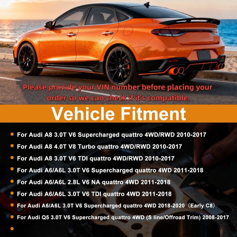 Fitment: For Audi A8 3.0T V6 Supercharged quattro 4WD/RWD 2010-2017 For Audi A8 4.0T V8 Turbo quattro 4WD/RWD 2010-2017 For Audi A8 3.0T V6 TDI quattro 4WD/RWD 2010-2017 For Audi A6/A6L 3.0T V6 Supercharged quattro 4WD 2011-2018 For Audi A6/A6L 2.8L V6 NA quattro 4WD 2011-2018 For Audi A6/A6L 3.0T V6 TDI quattro 4WD 2011-2018 For Audi A6/A6L 3.0T V6 Supercharged quattro 4WD 2018-2020(Early C8) For Audi Q5 3.0T V6 Supercharged quattro 4WD (S line/Offroad Trim) 2008-2017 The above models are for reference only. If you are not sure whether our products fit your vehicle, please contact us for an inquiry. Thanks! OE/OEM Part Number: 1087435079,0BK300038A,0BK300040F003 Package Include: 1 x Automatic Transmission (As shown in the figure) Store Categories Store Categories Long Block Engine Assembly Crankshaft Set Camshaft Set Cylinder Head Assembly Cylinder Head Set Gasket Set Piston Kit Rocker arm Lifter Set Seal Kit Timing Set Block Engine Assembly Motorcycle Parts Connecting rod Bearing Valve Set Others Other ZF 8HP55 8HP55 Automatic Transmission For Audi A8 A6 Q5 3.0T V6 4WD 1087435079 Features: Brand: HEKON Auto Parts Zone Status: In Stock Condition: Brand New and High Quality Product. Warranty: It is backed by our warranty (1 years) Fast shipping and good operation Total new and high q uality Please note your Vehicle Identification Number (VIN) when placing an order!!!!!! Fitment: For Audi A8 3.0T V6 Supercharged quattro 4WD/RWD 2010-2017 For Audi A8 4.0T V8 Turbo quattro 4WD/RWD 2010-2017 For Audi A8 3.0T V6 TDI quattro 4WD/RWD 2010-2017 For Audi A6/A6L 3.0T V6 Supercharged quattro 4WD 2011-2018 For Audi A6/A6L 2.8L V6 NA quattro 4WD 2011-2018 For Audi A6/A6L 3.0T V6 TDI quattro 4WD 2011-2018 For Audi A6/A6L 3.0T V6 Supercharged quattro 4WD 2018-2020(Early C8) For Audi Q5 3.0T V6 Supercharged quattro 4WD (S line/Offroad Trim) 2008-2017 The above models are for reference only. If you are not sure whether our products fit your vehicle, please contact us for an inquiry. Thanks! OE/OEM Part Number: 1087435079,0BK300038A,0BK300040F003 Package Include: 1 x Automatic Transmission (As shown in the figure) Notes: Please refer to the listing pictures for an accurate description of the parts included in the kit. Please ensure this item will fit your vehicle by checking the photos or the part number. Instruction is not included. Professional installation is recommended. If you have any questions, feel free to contact us, and we will reply you as soon as possible. Description: - Brand new and high quality - It could correctly replace the original part - 100% Tested - Professional manufacturing with stable performance for long time to use - Warranty:It is backed by our warranty (1 years) ABOUT US PAYMENT SHIPPING RERURN POLICY NOTE FEEDBACK ABOUT US For anything about item or package shipping, please just message us, message is always faster than opening a case. Prior to applying for a return, and leaving negative or neutral feedback, please do not hesitate to contact us, we are committed to resolving all issues in a friendly and satisfactory manner. You will expect to receive a response to your inquiry within 24 hours (Excluding Weekends and Public Holidays). Thanks so much! PAYMENT We accept all forms of payment permitted within the ebay Managed Payments checkout program, PayPal, Visa, Mastercard, American Express and Discover. Purchase paid via PayPal will be shipped to the confirmed name and address on the buyer's PayPal account. Please contact us before purchase the item if you would like to ship to a different address. Immediate Payment is required on all listings - please use the eBay cart for multiple purchases. Payment is expected within 7 days of auction closed. Your prompt payment will be greatly appreciated. Unpaid Items will be canceled per eBay Policies. SHIPPING We'll Only Ship The Item To Your eBay Confirmed Address, So Please Make Sure Your Shipping Address Is Correct Before You Buy the Item. Orders placed On the Weekend Or Holiday Will Be Shipped On Monday Or the Next Working Day. RERURN POLICY Shopping from HEKON Auto Parts Zone Engine Repair Auto Parts, you will always enjoy a 60-day Satisfaction Guarantee. Buyers could return new, unused products and in re-saleable condition for any reason within 60 days from the date of purchase. Please note that all returns should be pre-approved by our customer service team. Before returning, please contact our customer service team for the Label and return instructions. Unauthorized returns or used items will not be accepted. NOTE If you are unsure if this is the right part, or need more details such as which side it is, measurements, specs, or what is included, please message us before buying. Please include vehicle details (model, year, engine size, etc...) when you send a question. The years and models listed in the auction title do not mean the part will fit every single vehicle of that year and model. Please check the compatibility information in the listing, as different engine sizes and other options require different parts for a vehicle of the same model and year. The item specifics section also contains important details. If you have a question about the compatibility of a part, please refer to the link “See compatible vehicles” to eBay’s compatibility chart on the top middle of this listing; you can enter the specific details for your vehicle to determine if the part works. Some important details are not shown on the mobile app or mobile website, so please look at the listing in the full desktop website to make sure you order the correct part for your vehicle. FEEDBACK We will do our best to satisfy you and win your positive feedback. If there is any issue with the purchase, please contact us prior to leaving feedback, we will be glad to work with you to have it resolved well. Hot Selling Products Hot Selling Products On Jan 19, 2026 at 03:07:51 PST, seller added the following information: