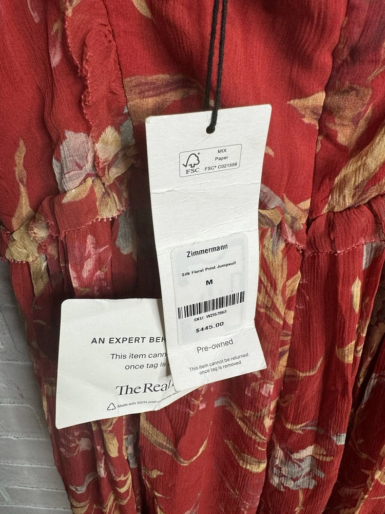 Embrace the beauty of nature with this stunning Zimmermann silk jumpsuit dress. The dress features a vibrant floral print that is sure to turn heads. The overall dress style is perfect for any occasion and is designed to flatter your figure. The long dress length adds an elegant touch to the look. Made with high-quality silk material, this dress is comfortable to wear and luxurious. The dress is available in size 2 and is suitable for regular size types. The multicolor design is perfect for women who love to add a pop of color to their wardrobe. This dress is a must-have for any fashion-forward woman.