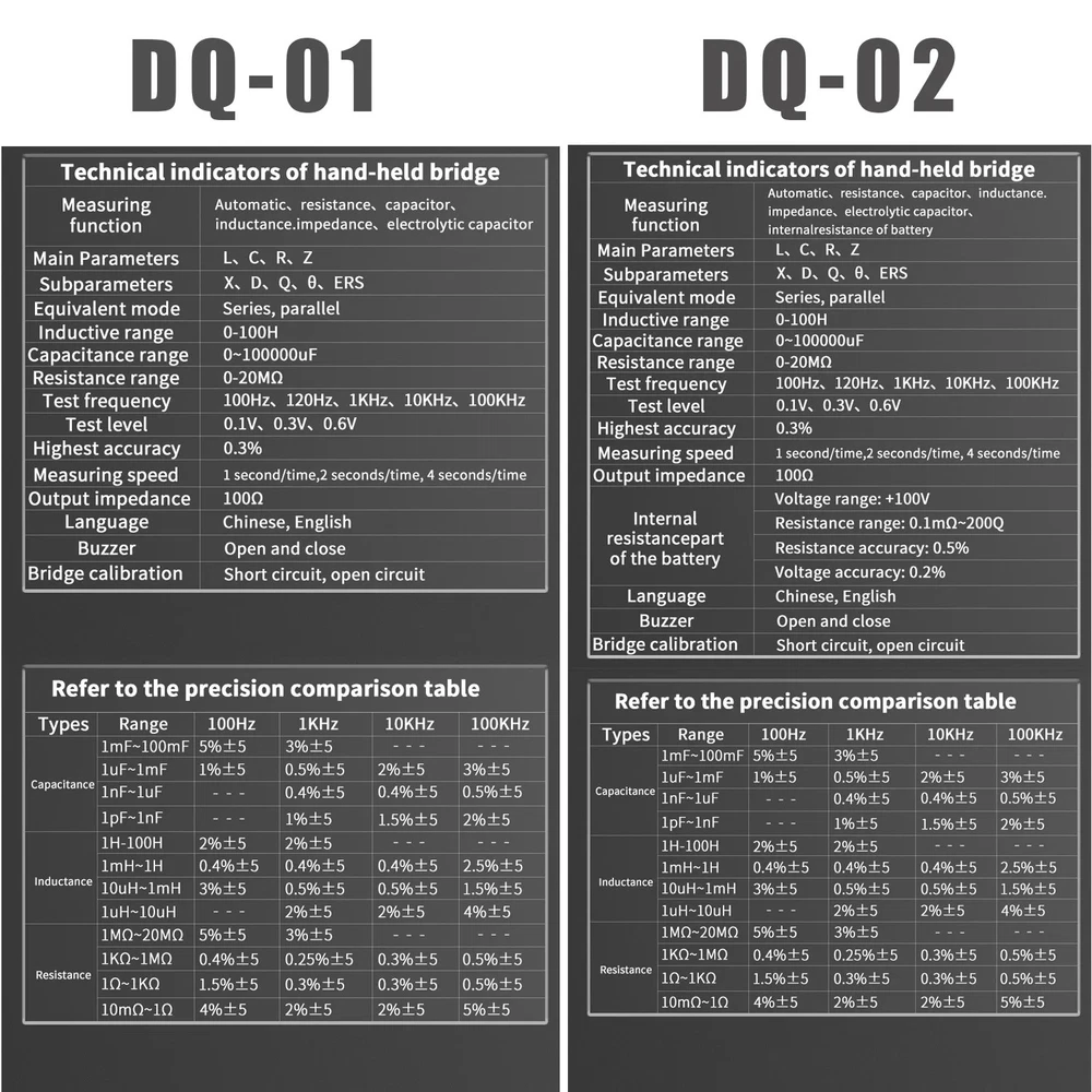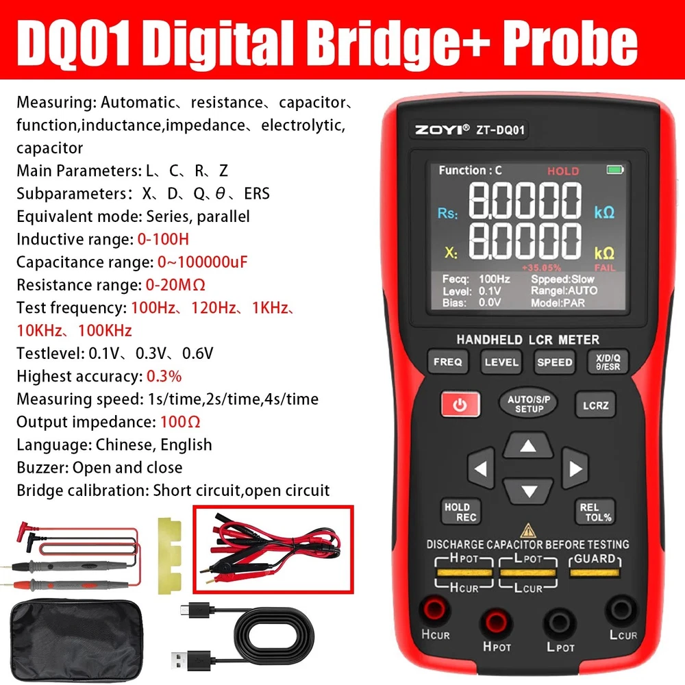 If available stock is too low, please advise the desired quantity. Product Highlights Swipe, compare and decide with confidence. 1 Overview 2 Gallery 3 Details & Specs 4 Support & FAQ Image gallery Tap thumbnails or arrows to switch the view. ‹ › ‹ › ‹ › ‹ › ‹ › ‹ › ‹ › ‹ › ‹ › ‹ › 1 / 10 2 / 10 3 / 10 4 / 10 5 / 10 6 / 10 7 / 10 8 / 10 9 / 10 10 / 10 Key benefits Why this product stands out Core features in a compact overview – ideal for quick comparison on eBay. Auto Range for Simple Testing Auto Range simplifies measurement across L, C, and R without manual range selection. Flexible Test Frequencies Test at 100 Hz, 120 Hz, 1 kHz, 10 kHz, or 100 kHz for versatile component testing. Portable, Battery Powered Handheld design runs on a battery for field use and on the bench. Clear Digital Display & Range Digital display shows results clearly; inductors range 0-100 H and test levels 0.1/0.3/0.6 V. At a glance Quick summary Clear & concise Take precise LCR measurements on the go with this portable ZOYI LCR meter. The auto-ranging handheld unit delivers reliable inductance, capacitance, and resistance readings in a compact, battery-powered form factor. A digital display presents results clearly, and the device covers an inductors range of 0-100 H with test frequencies of 100 Hz, 120 Hz, 1 kHz, 10 kHz, and 100 kHz for versatile component testing. Operating in Auto Range, it offers configurable test levels of 0.1 V, 0.3 V, and 0.6 V for stable readings. It supports ZOYI model variants ZT-DQ01 and ZT-DQ02 and is suitable for DIY electrical projects. Includes probes and test leads, plus carrying/utility items as pictured, with a battery included for immediate use. Details & Specs Technical Specifications Mobile-friendly Mobile: stacked view. Desktop: table view. Model ZT-DQ01, ZT-DQ02 Display 2.8-inch color display Test Frequencies 100 Hz, 120 Hz, 1 kHz, 10 kHz, 100 kHz Power Battery included Operating Mode Auto Range Model ZT-DQ01, ZT-DQ02 Display 2.8-inch color display Test Frequencies 100 Hz, 120 Hz, 1 kHz, 10 kHz, 100 kHz Power Battery included Operating Mode Auto Range Service & help Our promise, support & FAQs What’s included, service promise and answers to common questions. Included Scope of delivery – what is in the box 1× LCR meter (ZOYI ZT-DQ01/DQ02) 1× battery 1× probes / test leads 1× carrying/utility items (as pictured) Our Service Promise Shipping, delivery window & tracking Efficient logistics: We ship via selected partner warehouses to ensure fast, direct delivery. Shipped from: Ships most likely from CN; in some cases may be fulfilled from another location. Carrier varies; delays possible. Optimized carrier choice: The best carrier is selected dynamically based on the fastest route. Reliable delivery window: The shown delivery time is an overall estimate incl. handling and transit. Transparent tracking: The tracking number is provided as soon as the parcel reaches the distribution center. Frequently Asked Questions (FAQ) Answers to common buyer questions What does the ZOYI Portable LCR Meter DQ02 measure? It measures inductance (L), capacitance (C), and resistance (R) with auto-range, shown on a 2.8-inch color display. What test frequencies are available? 100 Hz, 120 Hz, 1 kHz, 10 kHz, and 100 kHz. Is the meter auto-range? Yes. It automatically selects the appropriate measurement range. How is it powered and is it portable? Powered by the included battery and designed as a handheld, portable instrument. Structured product overview Designed for mobile & desktop Helpful support section © 2026 WARENGUT. All rights reserved. Item number: 8256808492836923