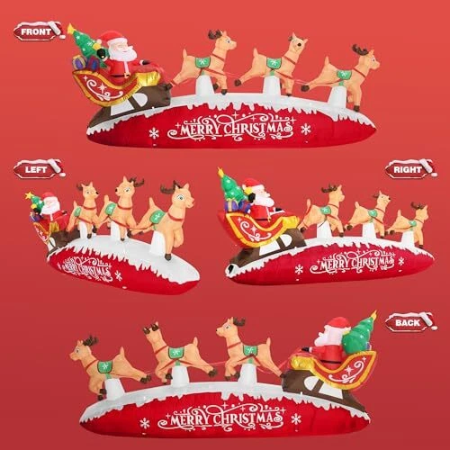 30 Days Return Policy Fast Delivery Trusted seller ZPISF 10 FT Santa Sleigh with Reindeer Christmas Inflatables Outdoor Decorations, Christmas Blow Up Yard Decorations for Garden Lawn Xmas Decor (Red) Product Description Magical Night: This large, bright Christmas inflatable scene is perfect for adding some festive cheer to your home. Santa waves enthusiastically from his sleigh, while the reindeer pull a sleigh full of presents on a bed of snow. The writing below Santa reads "Merry Christmas", making this scene the perfect way to wish your friends and family a happy holiday. Premium Quality Material: Waterproof, snow proof, and sun proof, this Christmas blow up will last year after year! Made with premium quality rip-resistant polyester, we have used a tighter stitching process to ensure this inflatable resists wear and tear and retains its bright colors over time. Safe & Secure: Display our outdoor Christmas inflatables with confidence and peace of mind. This inflatable is equipped with a built-in brushless IP68 air blower with a UL certified plug, making it a safe and reliable choice for your home. We've also included 8 ground stakes and 4 tethers for added stability during bad weather. Quick & Easy Setup: Watch these giant Christmas inflatables self-inflate in a minute or less! Simply unroll the material, zip up the back, plug in to an outlet and watch this giant inflatable come to life! Easy to follow instructions and a convenient gift box for storage are included so you can share this wonderful display year after year. Display Anyw: Resistant to all weather, you can use our Christmas outdoor inflatables in your front yard, back yard, and even in your living room! These bright and beautiful displays are also fun to have at events and will bring joy to all. Shipping Returns Payment Shipping Shipping is FREE to all addresses other than APO/PO boxes in the lower 48 states. All our stock ships from US-based warehouses. Shipped via USPS or UPS (depending on location and package weight) Unless stated otherwise, all orders will ship within 24-72 hours of your payment being processed. Check our feedback to see the great reviews of FAST shipping we offer. Returns As our valued customer, we will do our best to make sure the product you receive arrives to you on time and as expected. If you are not satisfied with your purchase, please contact us within 30 days of receiving your order to process a return. Payment We currently accept payment via eBay managed payments only. Once payment is cleared, we will dispatch your shipment within 1-3 business days. Please refer to the "Shipping" tab for more information regarding shipping speed to your destination.