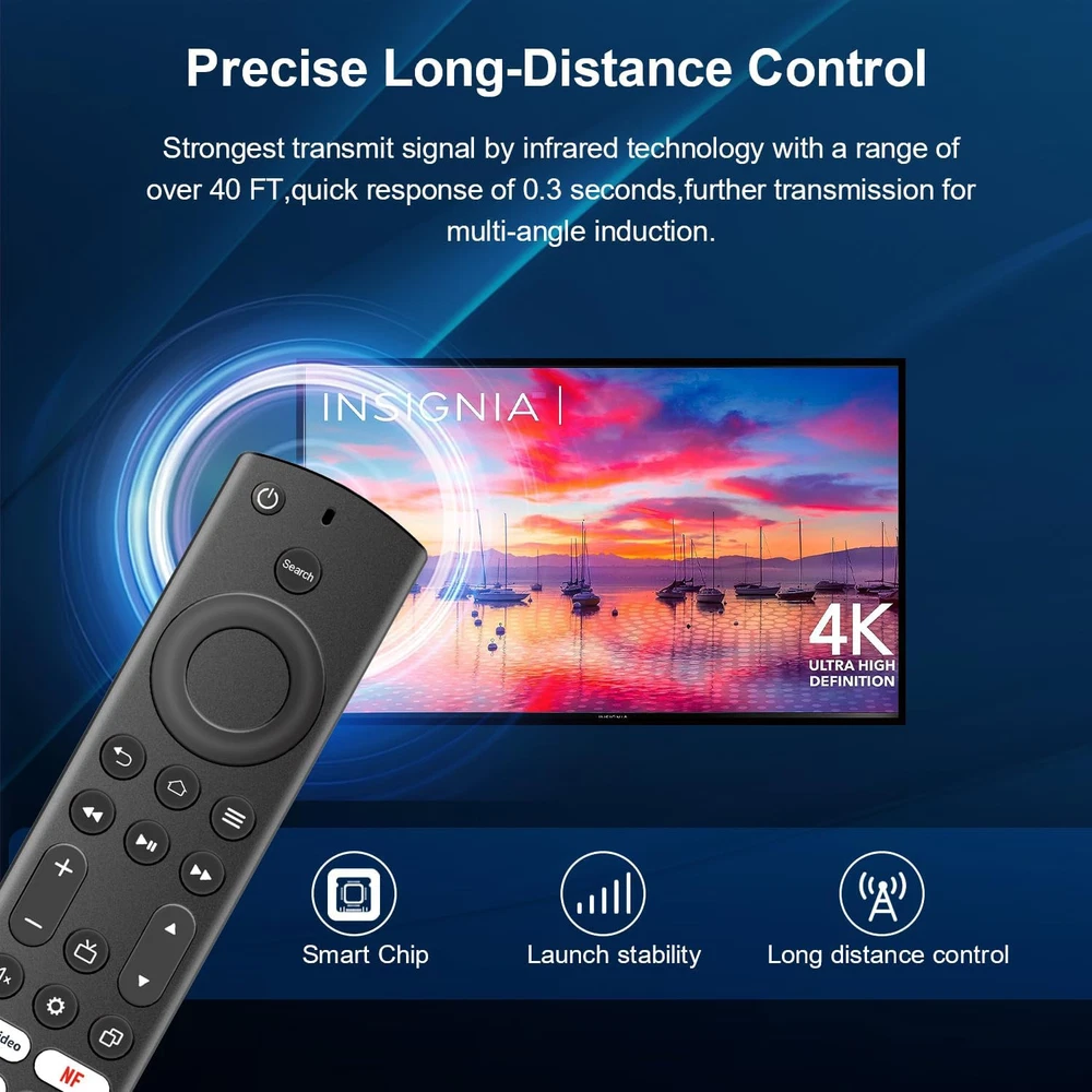 ZYK 2 Pack Replacement Universal Remote for All Insignia TV and Toshiba Black Product Details Product Dimensions: 5.9 x 1.5 x 0.38 inches Item Weight: 4.6 ounces Manufacturer: ZYK Brand: ZYK Special Feature: Ergonomic Color: Black Max Number of Supported Devices: 1 Compatible Devices: Television 【Applicable TV Series】Pack of 2 universal tv remote control fits for all Insignia smart TVs and Toshiba smart TVs, including Insignia TVs F30 / F20 / F50 / DF710 / DF711 / DF310 / DF510 / DF311 / DF620 series. Replacement smart tv remote for Toshiba TVs LF711 / LF621U / LF421U / LF221U / C350 / A810U / A710U / DF510 / DF711 series.Remote for Amz TV 4-Series / Omni Series / Omni QLED Series, and more.Also can compatible with Hisense Smart TV remote control. 【Remote Compatibility】This new upgraded universal remote for insignia-tv-remote can be compatible with many remote control models, including insignia, Toshiba and Hisense series remote, NS-RCFNA-21, CT-95018, CT-RC1US-21, NS-RCFNA-19,CT-RC1US-19, CP-RC1NA-22 etc. 【Accurate Control & Fast Response】New upgraded smart chip, feature with over 12 meters (40 feet) farther transmitting distance, stable performance, An outstanding response between TV and remotes, it will respond quickly in 0.5 seconds, easily replace missing or damaged remote,keep the same full control functionality of your original insignia and toshiba tv remote control.This for Insignia-smart-tv-remote control had also been successfully tested to click the buttons highly over 120,000 clicks. 【Key Features】 It's important to note that this is an infrared remote control, NO voice function, NOT support bluetooth pairing., NOT for tv stick. There is a text search function instead of voice function, you can input the keywords to search the needed content. It is designed with 4 shortcut buttons,including Prime Video, NF, Disny and hulu, one key access to your favorite applications, it could make your life easier! 【Package lncluded】 Packed with 2 remote. Two-pack remote control can solve your home backup remote control needs, Don't worry about losing the remote control or biten by your pets.Infrared remote no pairing or programming needed. Use it just right out of the box, just Insert 2 Pcs*AAA batteries to get it work(Note: Batteries are not included).