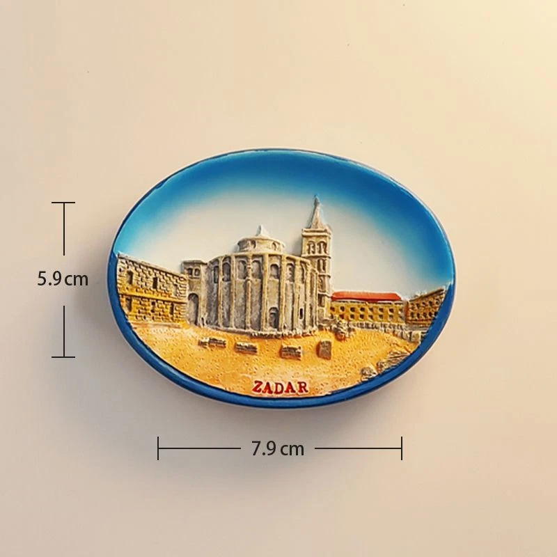 gtin13:Does not applyColor:MulticolorMaterial:ResinType:Fridge MagnetEstado del artículo:NuevoTheme:Topographical & SouvenirUPC:Does not applyBrand:UnbrandedFeatures:Engraved, Souvenir, Croatia, Church of St. Donatus, ZadarDimension conversion:1 cm = 0.39 inch; 1 inch =2.54 cmHandmade:YesOccasion:Home Decor, Message Sticker, Business Gift, Souvenir Gift