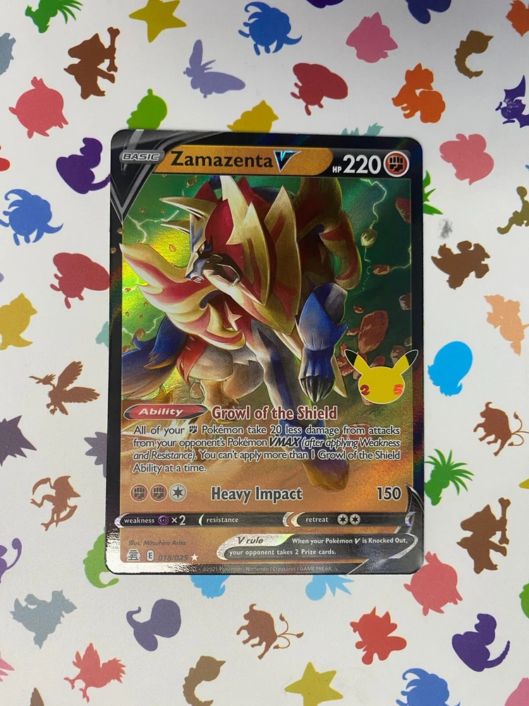 You’ll get one Pokémon card Zamazenta V 018/025 in excellent conditions… +something free 🍀🍀free shipping on all graded cards and combine shipping for multiple orders 🍀🤙🏻🍀🤙🏻