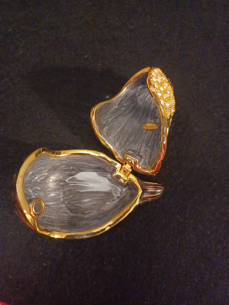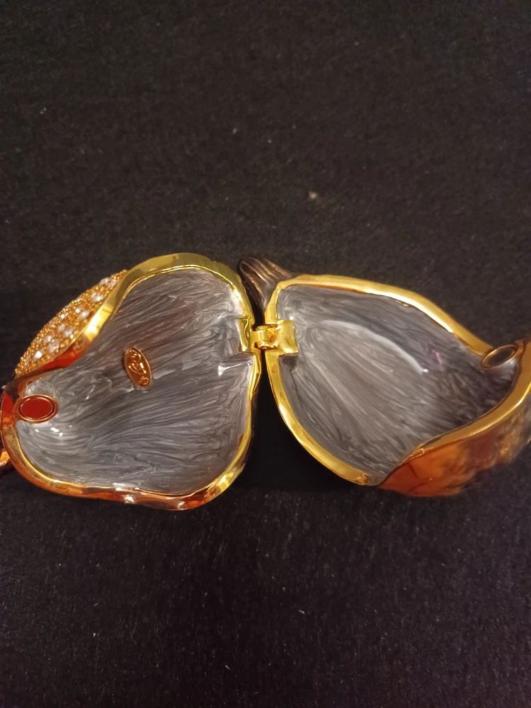 Zanzibar Green And Gold Bird Hinged Metal Enamel Rhinestone Trinket Box. Shipped with USPS Ground Advantage.