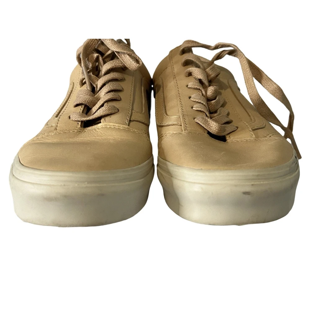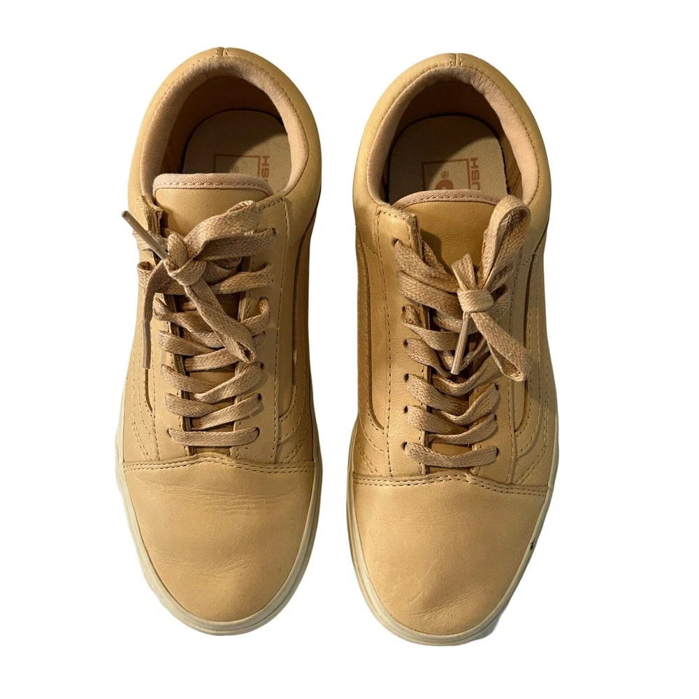 VANS Old Skool sneakers perfect for both men and women tan color with a classic VANS design upper material is made of high-quality leather perfect for everyday wear feature ultra-cush insoles. lace up, man-made sole ** all items stored in a smoke-free & pet free home ** please see photos for signs of wear