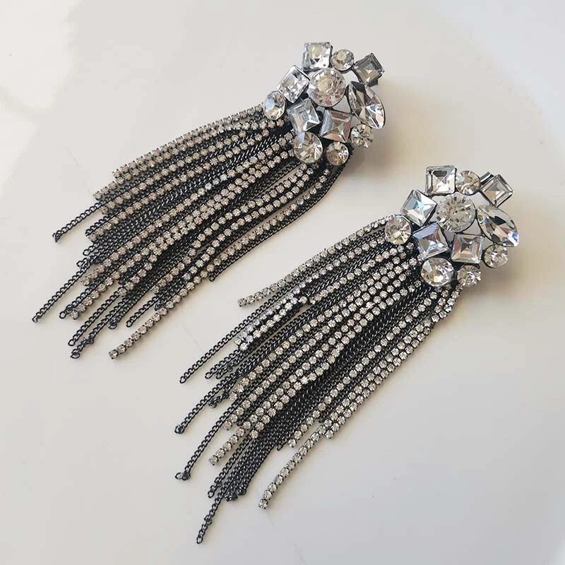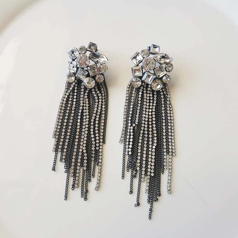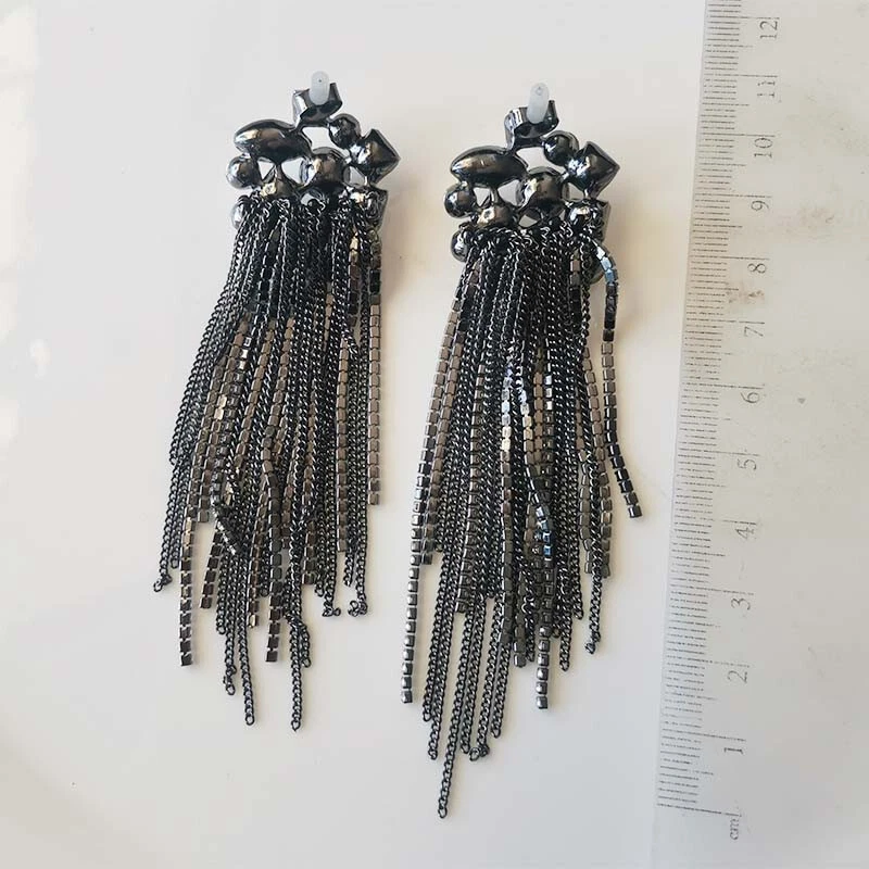 Certification: None Closure: Studs Gemstone Clarity Grade: Eye Clean lot: No Main Color: Tungsten+Clear Main Stone Shape: Mixed gtin13: Does not apply Color: Tungsten+Clear Main Stone Creation: Simulated Signed?: Unsigned Gongying: yilong13000-010-2 Base Metal: Alloy Secondary Stone: Not Applicable Item Diameter: None Style: Drop/Dangle UPC: Does not apply Material: Rhinestone Occasion: Anniversary, Birthday, Christmas, Graduation, Mother's Day, Valentine's Day, Wedding Main Stone Treatment: Filling Main Stone Color: Clear Metal: Alloy Gender: Female Country of Origin: China Cut Grade: Good Setting Style: None Metal Purity: Unknown Number of Gemstones: None Item Length: 100mm Customized: No Theme: Statement Type: Earrings Shape: Tassel Brand: Zara Country/Region of Manufacture: China Features: Nickel-Free Modified Item: No Main Stone: Rhinestone