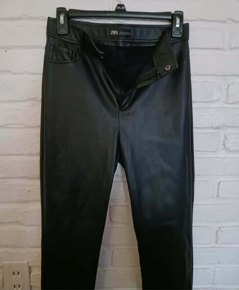 Elevate your wardrobe with these stylish Zara Women's Faux Leather Pants. These black dress slacks are perfect for any occasion and are made with high-quality faux leather material. The pants come in a size medium with a 28-inch inseam, making them a great fit for any regular-sized woman. The pants are designed with a modern and trendy style, perfect for any fashion-conscious woman. The Zara brand is known for its exceptional quality and attention to detail, making these pants a must-have for any wardrobe. Add these sleek and stylish pants to your collection today!