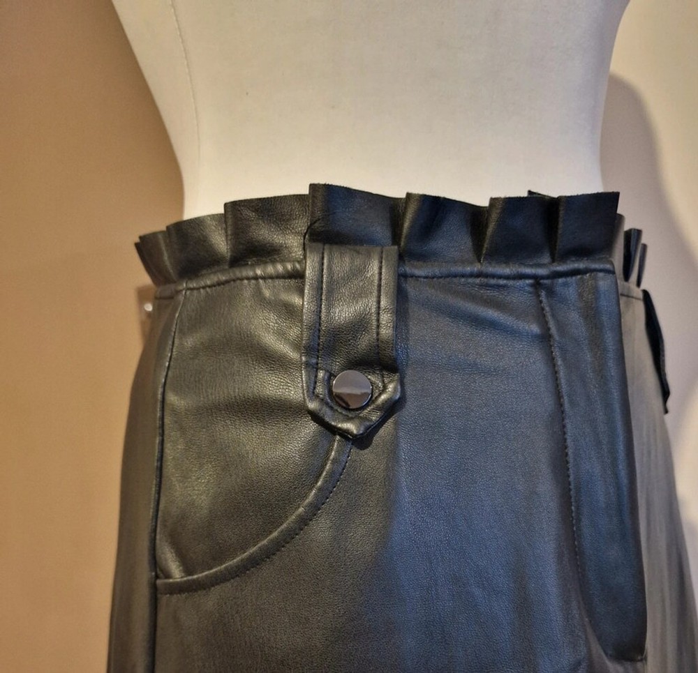 Zara faux leather pleated skirt - Size medium. Worn once, immaculate condition. Ruffle pleated detailing on the hem and waist. Chrome studded belt loops. Zip fastening with pockets.