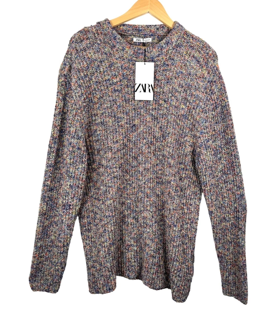 New with Tag Retro-inspired style! Zara Men's Textured Speckle Knit Sweater Relaxed fit with a subtle speckle knit design, perfect for layering or standalone looks. Brings 90s vibes to your wardrobe with modern comfort. Flat lay: pit to pit 21.5" Length 31" Material: 53% acrlic 37% cotton 10% Poly colorful, 90s, retro, rainbow, versatile, knit, stretch, comfy, cozy, slouchy, preppy, city, nostalgic, timeless, warm, street wear, bold, hipster, PLEASE check all flat lay measurements and listings carefully BEFORE PURCHASE!I put in a lot of work into hand measuring and researching each items as best as I can! Thank you so much for your consideration! Please note that: RETURN SHIP FEE IS PAID BY THE BUYER! If you are not too familiar with flat lay measurements, I recommend taking a measurement of your own clothes that you feel comfortable and compare with the measurement I provide. For returns: The items MUST BE IN SAME CONDITION AS SOLD for full refund! We all don't like returns and let's work together to minimize! Please note that RETURNS ARE NOT ACCEPTED FOR NEW WITH TAG OR NEW WITHOUT TAG ITEMS!