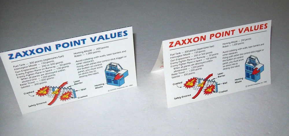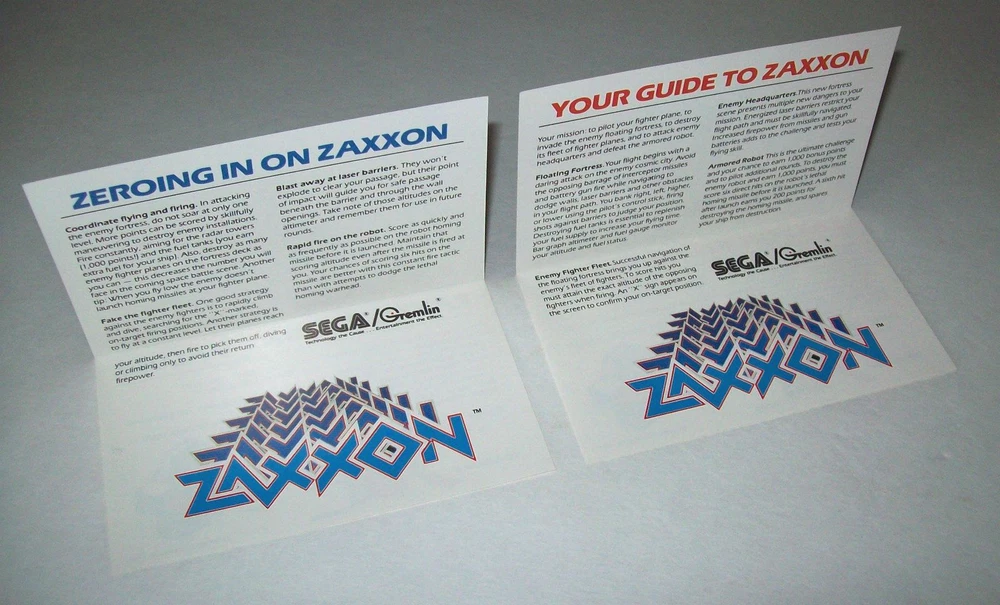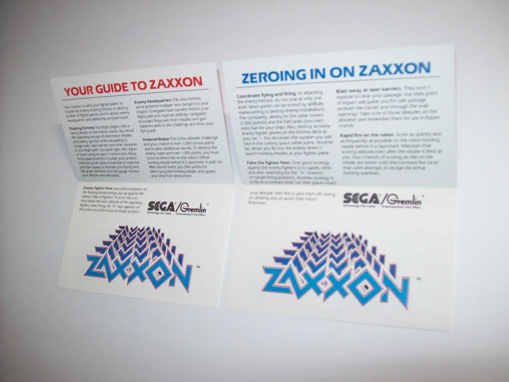 Zaxxon Arcade Flyers (2) Mini NOS Combat Ace And Space Pilot Video Game 5" x 3" Original paper promo sales flyers. These open up as shown. Lot of (2) different. Flyers are perfect for framing and make great wall art. A flyer is an paper promotional advertising art print sheet made for coin operated amusement arcade games. Also called a circular, brochure, pamphlet, or flier. Size is 5" X 3". Plastic protector included with each flyer sold. More pinball, jukebox, slot machine, and vintage arcade game items for sale in our store. SHIPPING Bundle and save by using cart and making single payment. International buyers are responsible for any import fees/taxes. ABOUT US Seller of vintage retro collectibles, pop culture, paper ephemera, new old stock advertising, artwork, original pinball flyers, vinyl records, Mr. Peanut, video arcade flyers, pinball machine parts, game manuals, pinball promo plastics, Mad magazines, antique Halloween and holiday postcards, Christmas items, super hero memorabilia, horror themed art, gifts. Any questions about this item please just ask.