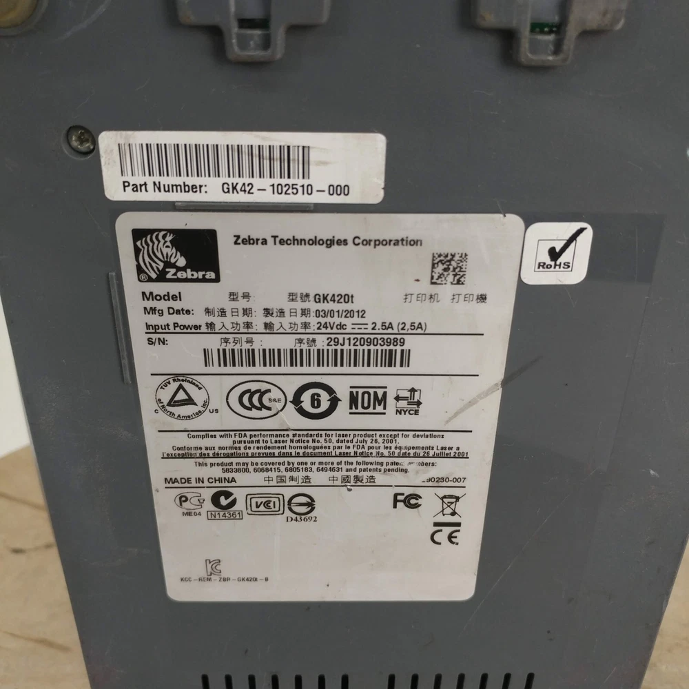 Zebra GK420t USB Monochrome Thermal Label Printer For Parts Only This unit is not in working condition and is being sold for parts only. I received it in this condition without a power supply and without the roller. It does power on but no other testing can be done. See pictures for cosmetic condition and missing parts.