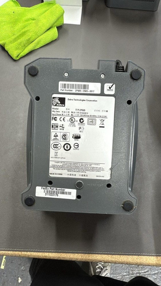 Zebra ZP505 Desktop Barcode Label Thermal/Shipping Label Printer ZP505-0503-0017 Condition: Used - tested ( working ) - light wear from normal use Specifications Brand ZEBRA Connectivity Technology USB Printing Technology Thermal Special Feature Portable Color black Model Name ZP505 503 17 Printer Output Monochrome Controller Type Push Button Printer Media Size Maximum 4x6 inches Power Consumption 50 Watts